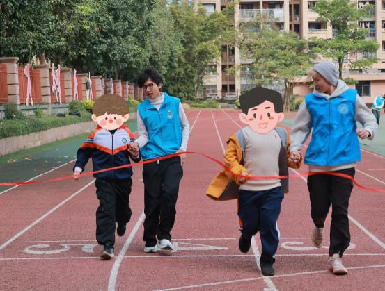 活動中,志愿者分工協(xié)作,提供全程引導(dǎo)與陪伴。有的提前熟悉賽道,用清晰口令指引方向;有的協(xié)助完成檢錄、熱身等準(zhǔn)備工作;有的在終點及時提供攙扶與補(bǔ)給,保障了比賽安全有序進(jìn)行。盲校學(xué)生在賽場上奮勇爭先,志愿者則始終陪伴在側(cè),通過語言鼓勵和實際協(xié)助,與他們共同感受運(yùn)動的激情與喜悅。