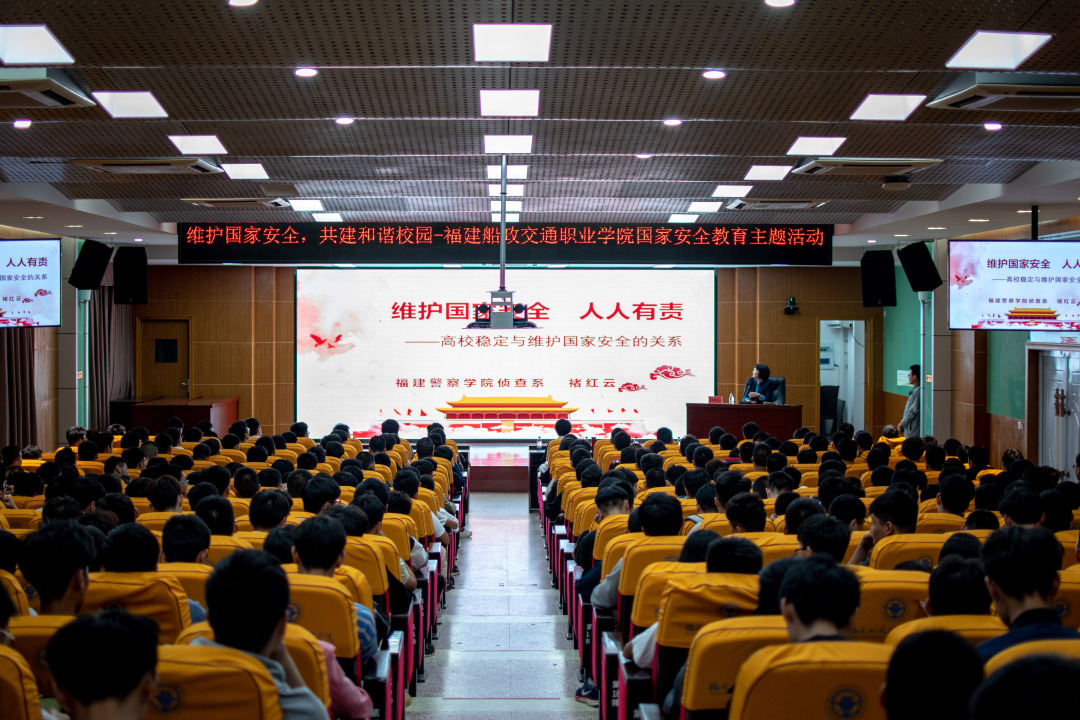 黨的十九大報告指出:“國家安全是安邦定國的重要基石,維護國家安全是全國各族人民根本利益所在?!?維護國家安全,不僅需要強大的經(jīng)濟實力、軍事實力等“硬實力”,還需要國民具有良好的國家安全意識、國家安全素養(yǎng)等“軟實力”。為了進一步提升青年學(xué)子的國家安全意識,增強國家安全素養(yǎng),福建船政交通職業(yè)學(xué)院于2019年4月18日晚7點特別邀請福建警察學(xué)院褚紅云副教授在6樓報告廳舉辦《維護國家安全人人有責(zé)——高校安全與國家安全關(guān)系》的專題講座,機械工程系350名師生參加了本次活動。