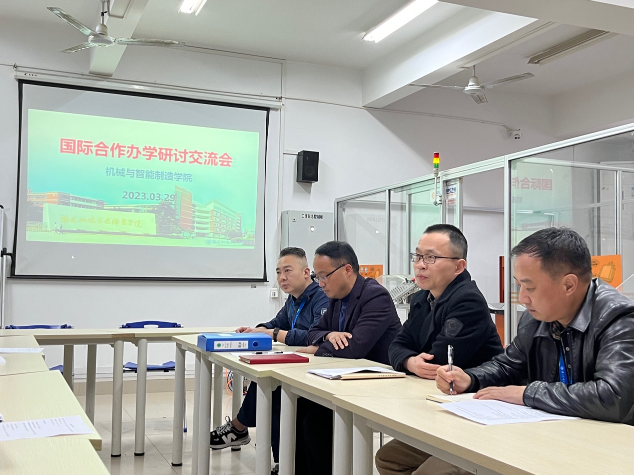 3月29日下午,對外交流中心伍小明主任和林峰民副主任蒞臨機械與智能制造學院,與機械學院院長楊開懷、副院長陳貴清,以及國際合作辦學項目相關的老師在26號樓二樓會議室進行了座談,雙方就國際辦學合作做了深入交流與探討。