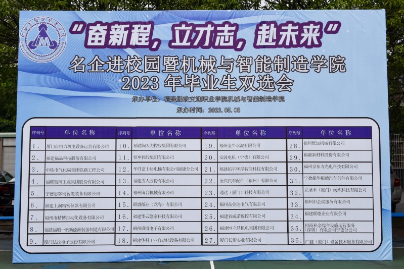 為扎實開展學習貫徹習近平新時代中國特色社會主義思想主題教育,牢牢把握“學思想、強黨性、重實踐、建新功”的總要求,貫徹落實黨中央、國務院關(guān)于高校畢業(yè)生就業(yè)工作的決策部署,扎實推進我院2023屆畢業(yè)生就業(yè)工作,積極響應團中央號召開展“共青團促進大學生就業(yè)行動”,為用人單位和畢業(yè)生搭建供需橋梁,服務大學生實習就業(yè)和融入社會,我院舉辦“福建船政交通職業(yè)學院機械與智能制造學院2023屆畢業(yè)生夏季雙選會”,為我院即將畢業(yè)的2023屆畢業(yè)生聚合優(yōu)質(zhì)就業(yè)資源,引導同學們積極投身社會實踐、掌握求職技巧,促進畢業(yè)生高質(zhì)量就業(yè)。