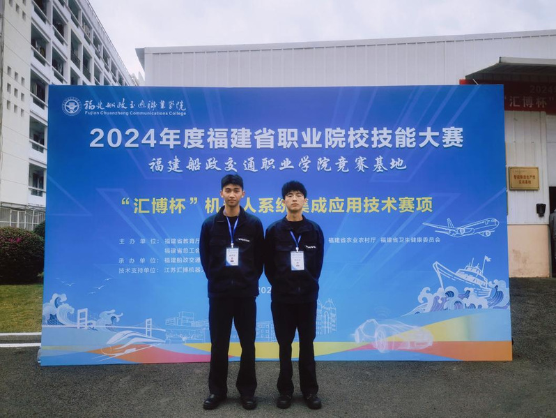 2023年12月8日--12月10日,福建省職業(yè)院校技能大賽“機器人系統(tǒng)集成應(yīng)用技術(shù)”賽項在福建船政交通職業(yè)學(xué)院舉行,來自全省18支代表隊參賽。經(jīng)過緊張激烈的比賽,我校機械與智能制造學(xué)院楊開懷、童曉薇兩位老師指導(dǎo)的陳育凱、陳世衛(wèi)同學(xué)獲得團體賽一等獎。