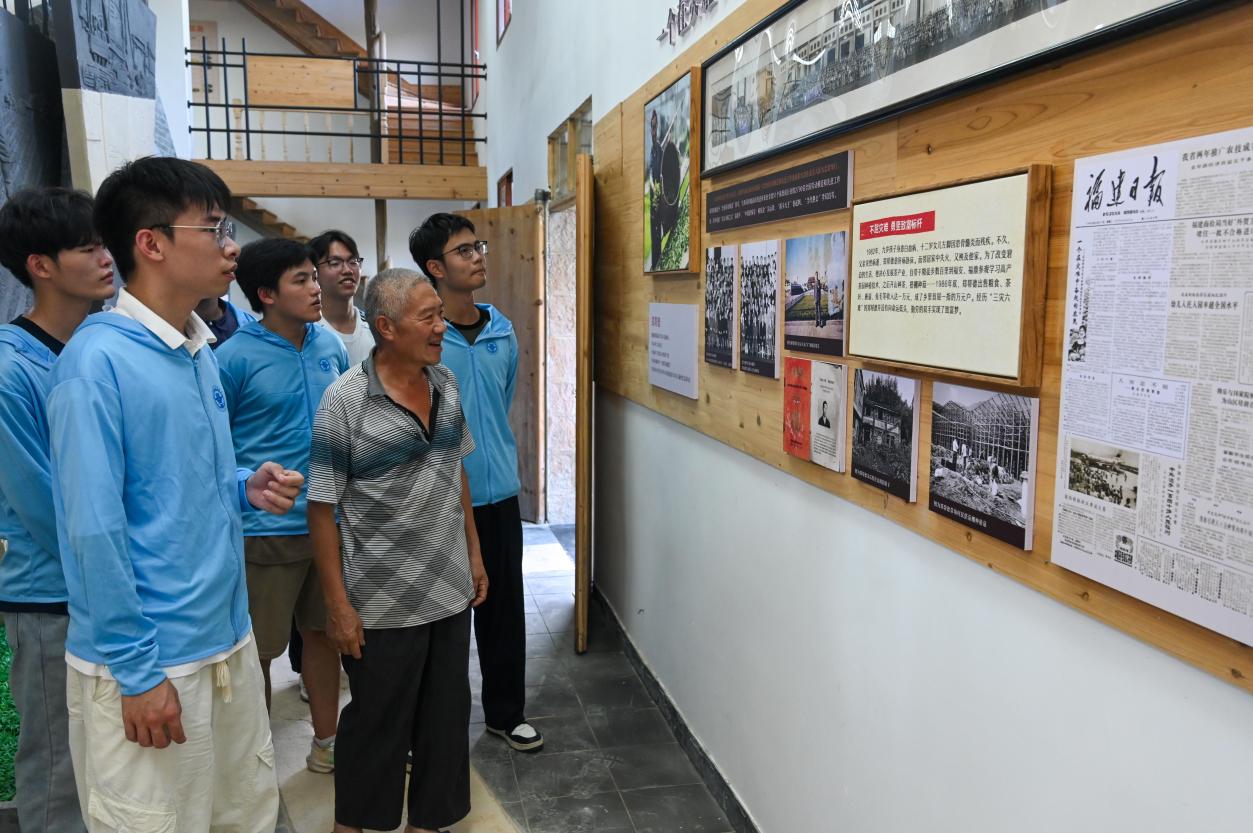 (當?shù)刂v解員為實踐團成員進行介紹)