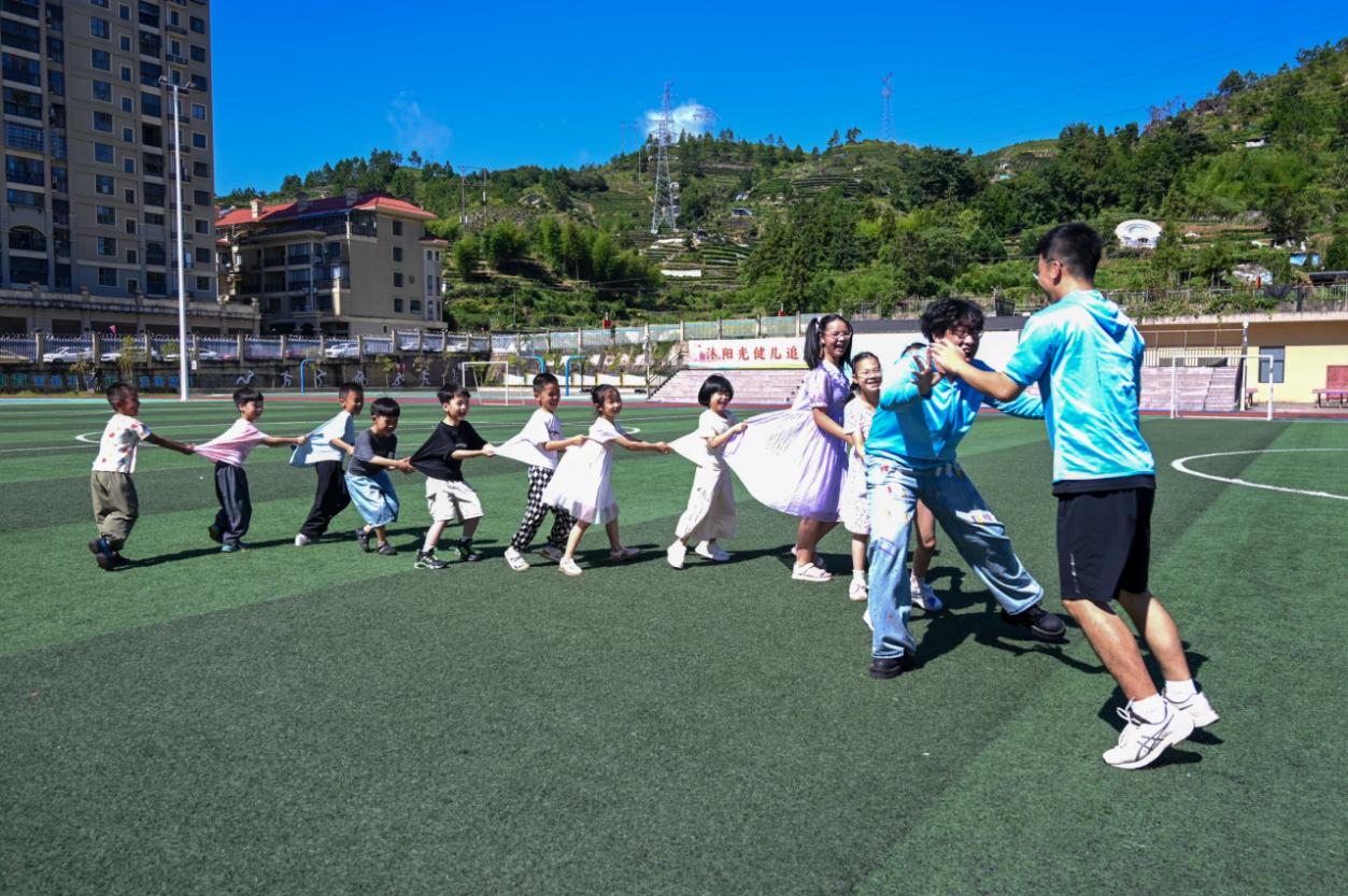 在“黃色動能課堂”中,實踐團以團隊協(xié)作為核心,從激情四溢的團體拔河,到默契十足的兩人三足賽跑,再到考驗團隊默契與策略的珠行萬里挑戰(zhàn),每一項游戲都精心設計,旨在讓留守兒童們掙脫教室的束縛,投身于戶外的廣闊天地。在這片充滿活力的空間里,孩子們在歡笑與汗水中強健體魄,于團結協(xié)作中深化友誼,更在公平而激烈的良性競爭中,學會了堅持與成長,收獲了寶貴的人生經(jīng)驗與自我超越的喜悅。