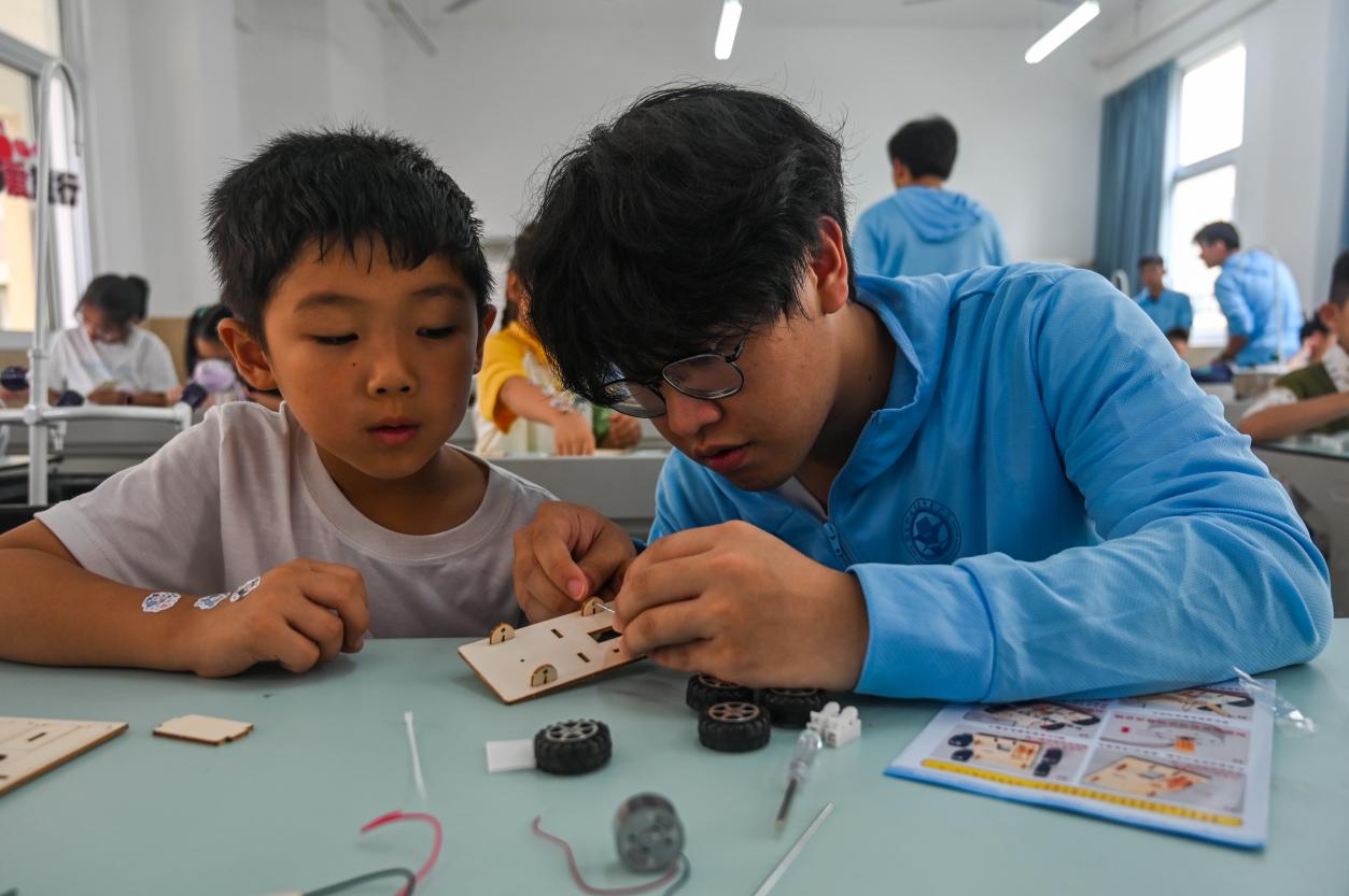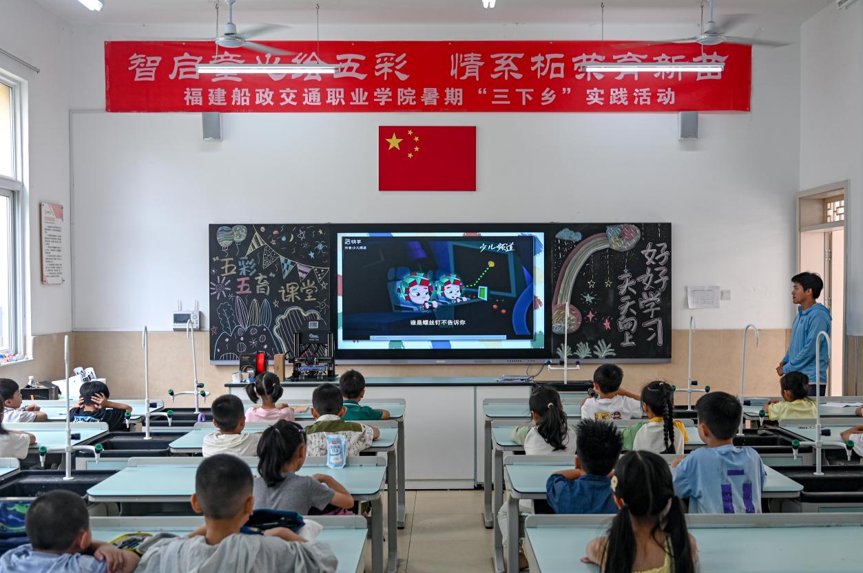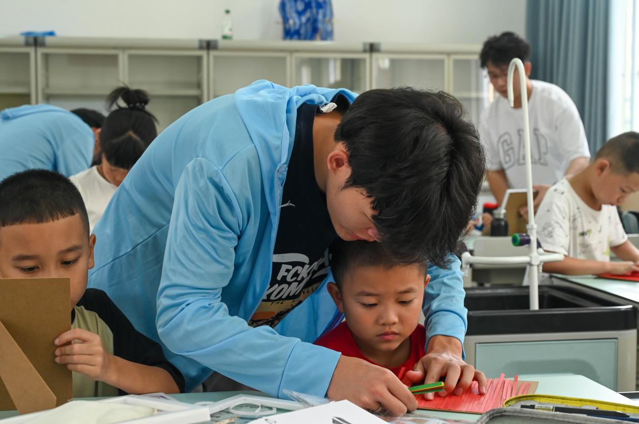 實踐團成員們懷揣著高度的責任感與使命感,為小學中低年級留守兒童精心策劃了一系列覆蓋德智體美勞全面發(fā)展的課程。課程內(nèi)容不僅包含思想引領與文化傳承的深刻內(nèi)涵,還融入科技創(chuàng)新的探索樂趣、藝術素養(yǎng)的熏陶培育以及勞動教育的實踐體驗。這些精心打磨的課程,不僅為留守兒童們構筑了一段既難忘又充實的“五彩五育”研學之旅,還讓他們在歡聲笑語中收獲知識、提升能力,原本平淡的暑期生活也因此煥發(fā)出別樣的光彩,如同被點亮的星辰,閃耀著成長的光芒。