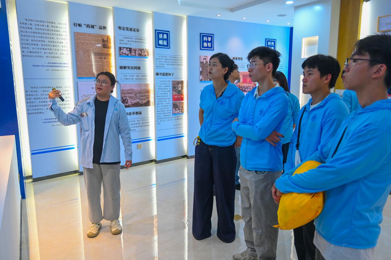 在力捷迅工廠員工的帶領下,實踐團來到了企業(yè)展廳。這里陳列著公司歷年研發(fā)生產(chǎn)的各類藥品,從常見的感冒藥到用于臨床治療的專業(yè)藥物,講解員細致地介紹了每種藥品的功效、研發(fā)背景及市場應用情況,使團員們對力捷迅藥業(yè)的產(chǎn)品線和市場定位有了初步認識。同時,展廳中展示的公司發(fā)展歷程、榮譽獎項,也讓大家看到了力捷迅在制藥領域多年來的堅守與成就。