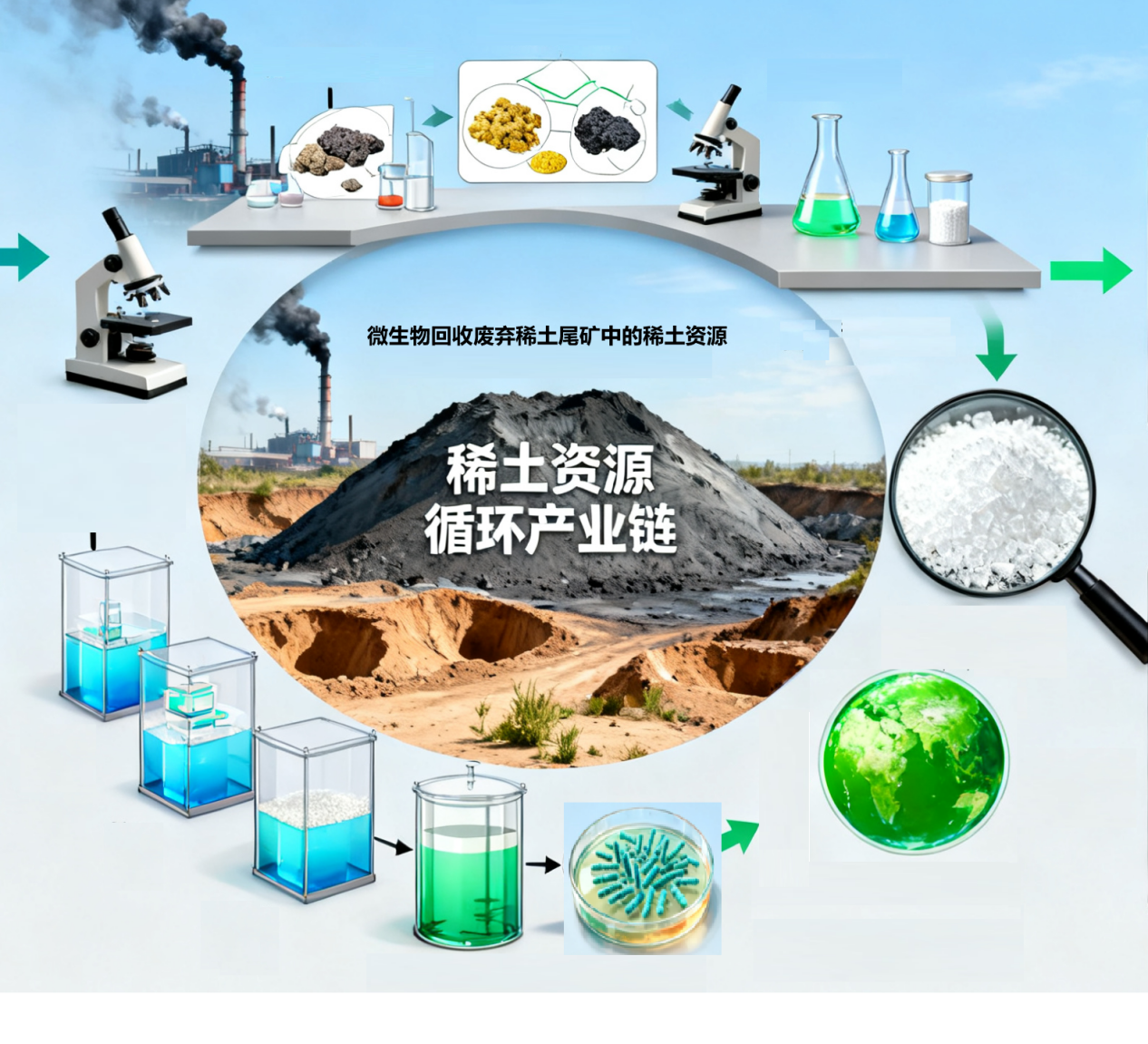 2. 工藝與設(shè)備創(chuàng)新: 創(chuàng)建階梯式連續(xù)多反應倉生物浸出系統(tǒng)。該系統(tǒng)通過微生物擴增區(qū)-礦物浸出區(qū)-微生物代謝活動分泌的胞外多聚物強化區(qū)的串聯(lián)設(shè)計,旨在提升稀土浸出率,同時降低浸出液氨氮含量。