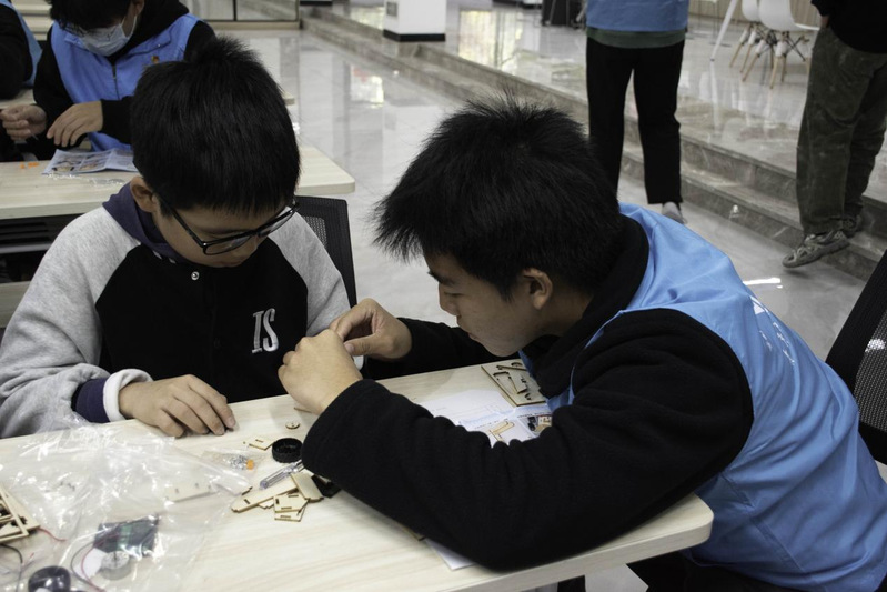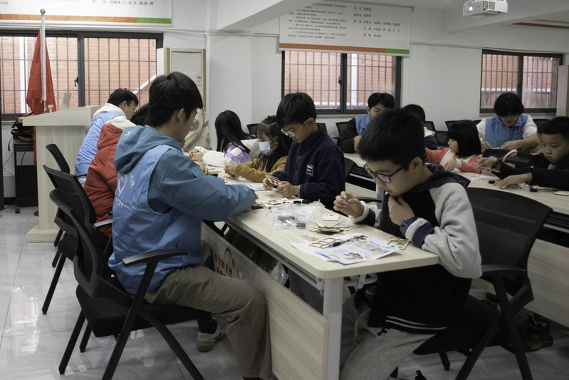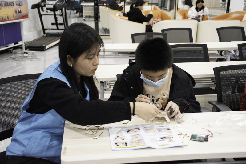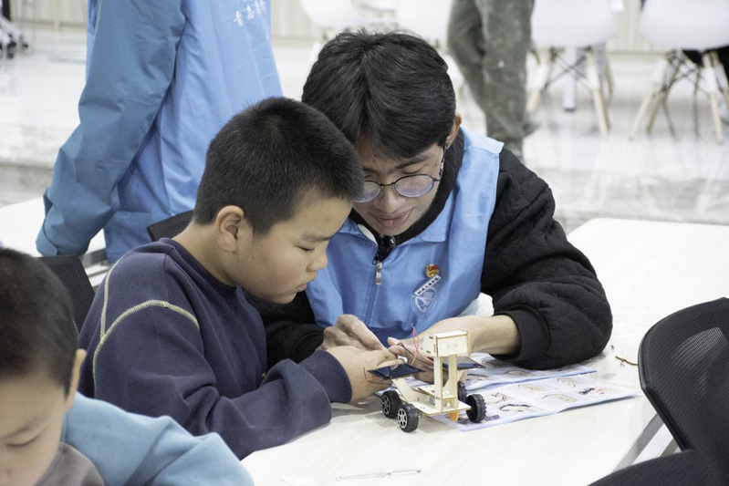 活動現(xiàn)場暖意融融、氛圍熱烈,處處洋溢著探索與創(chuàng)造的活力。志愿者們提前做好物料分發(fā)、流程梳理等準(zhǔn)備工作,待小朋友們到場后,便以通俗易懂的語言講解月球探測車的工作原理、航天小知識,為手工制作鋪墊基礎(chǔ)。隨后,小朋友們化身“小小工程師”,滿懷期待地拆開月球探測車套件,在志愿者的悉心指導(dǎo)下,仔細(xì)辨認(rèn)零件、精準(zhǔn)組裝車輪、細(xì)心連接電路、穩(wěn)妥固定太陽能板,全神貫注完成每一個步驟。面對繁雜的組裝流程,志愿者們始終耐心陪伴,跟著小朋友的節(jié)奏逐一答疑解惑,及時糾正細(xì)節(jié)偏差,確保每一個環(huán)節(jié)都安全有序、精準(zhǔn)無誤。