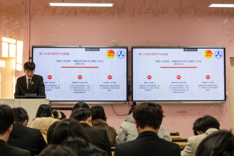 述職結(jié)束后,學(xué)院黨總支書(shū)記朱寶杉對(duì)各部門(mén)工作進(jìn)行總結(jié)點(diǎn)評(píng)。她充分肯定學(xué)生干部一學(xué)期以來(lái)的辛勤付出和工作成果,同時(shí)強(qiáng)調(diào),述職不僅是對(duì)過(guò)往工作的總結(jié)反思,更是為了明確新學(xué)期的發(fā)展方向。她要求學(xué)生骨干在新學(xué)期要緊扣服務(wù)學(xué)生的宗旨,強(qiáng)化思想引領(lǐng),加強(qiáng)部門(mén)間的協(xié)作配合,大膽創(chuàng)新活動(dòng),切實(shí)發(fā)揮好學(xué)院與學(xué)生之間的橋梁紐帶作用,推動(dòng)學(xué)院學(xué)生工作邁上新的臺(tái)階。