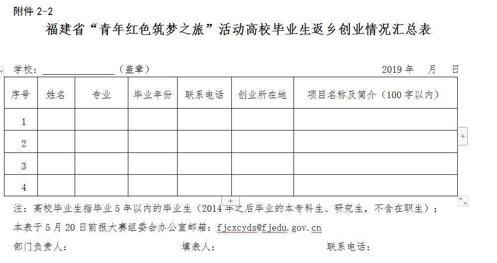 2-2.福建省“青年紅色筑夢之旅”活動高校畢業(yè)生返鄉(xiāng)創(chuàng)業(yè)情況匯總表