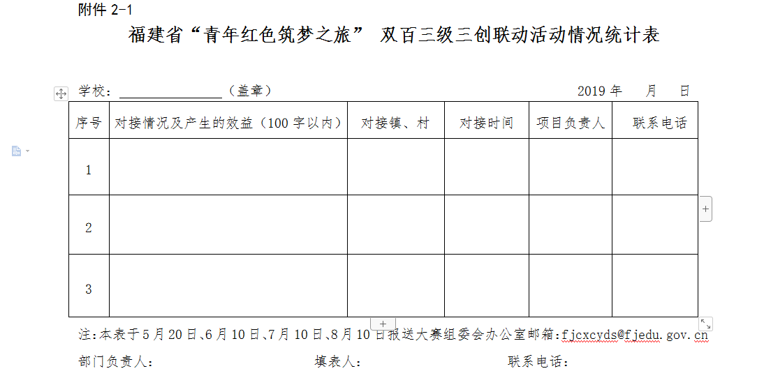 附件:2-1.福建省“青年紅色筑夢之旅” 雙百三級三創(chuàng)聯(lián)動活動情況統(tǒng)計表