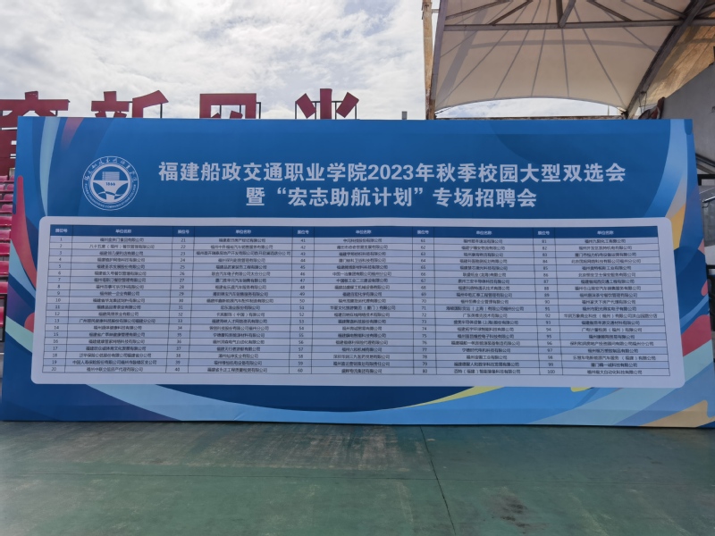 9月8日下午學院2024屆畢業(yè)生秋季校園綜合雙選會暨“宏志助航計劃”專場招聘會在青春田徑場成功舉辦。中國一冶集團有限公司、福建福船一帆新能源裝備制造有限公司、寧德時代電機科技有限公司、宏東漁業(yè)股份股份有限公司等百家省內(nèi)知名企業(yè)進校招聘,我校8000余名畢業(yè)生參會。