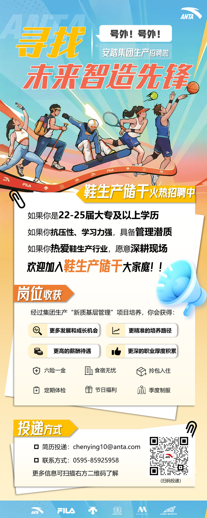 安踏集團(tuán)創(chuàng)立于1991年,2007年在中國(guó)香港上市,是一家專(zhuān)門(mén)從事設(shè)計(jì)、生產(chǎn)、銷(xiāo)售運(yùn)動(dòng)鞋服、配飾等運(yùn)動(dòng)裝備的綜合性、多品牌的體育用品集團(tuán)。截止2023年底,集團(tuán)員工總數(shù)超6萬(wàn)名,其中新吸納了超25000名高校畢業(yè)生及35歲以下年輕人才,間接創(chuàng)造超20萬(wàn)個(gè)就業(yè)崗位。安踏集團(tuán)堅(jiān)持"單聚焦、多品牌、全球化”的發(fā)展戰(zhàn)略,旗下?lián)碛邪蔡?/span>ANTA(中國(guó))、斐樂(lè)FILA(意大利)、迪桑特DESCENTE(日本)、可隆體育KOLON SPORT(韓國(guó))等多個(gè)知名的運(yùn)動(dòng)品牌,全面滿(mǎn)足消費(fèi)者的多元化需求。