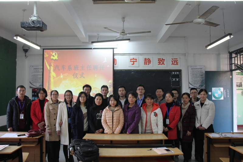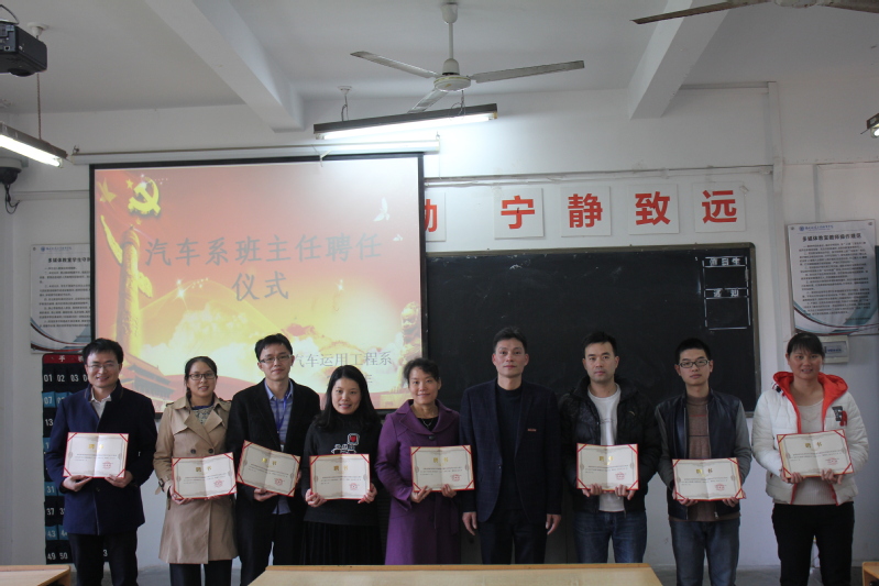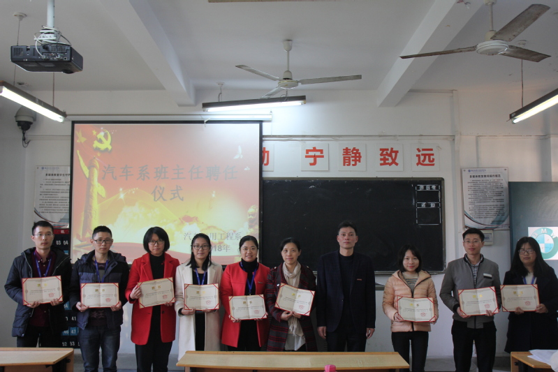 2018年12月26日,福建船政交通職業(yè)學(xué)院汽車運用工程系“2018級新生班級班主任聘任儀式”在北區(qū)22號樓汽西203教室隆重舉行。汽車運用工程系黨總支書記蔡華錦主持儀式,為今年新當選的18位班主任頒發(fā)聘書,并一同合影留念。