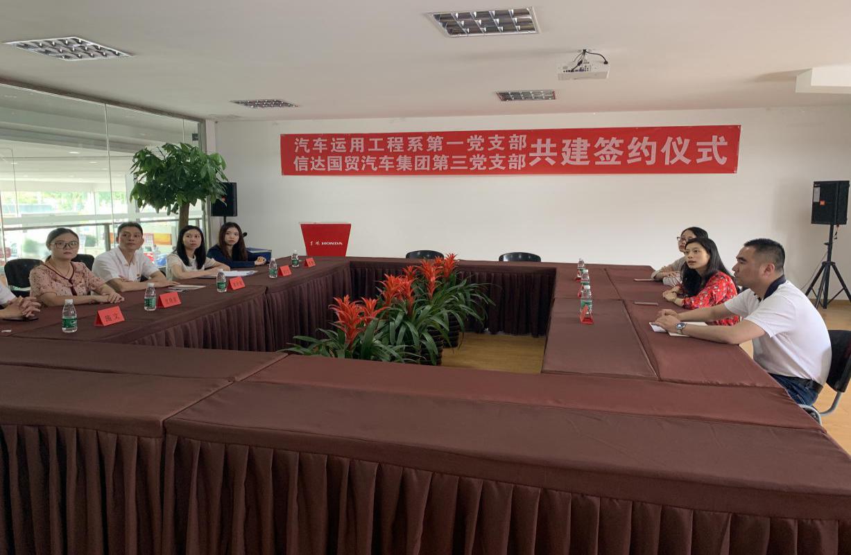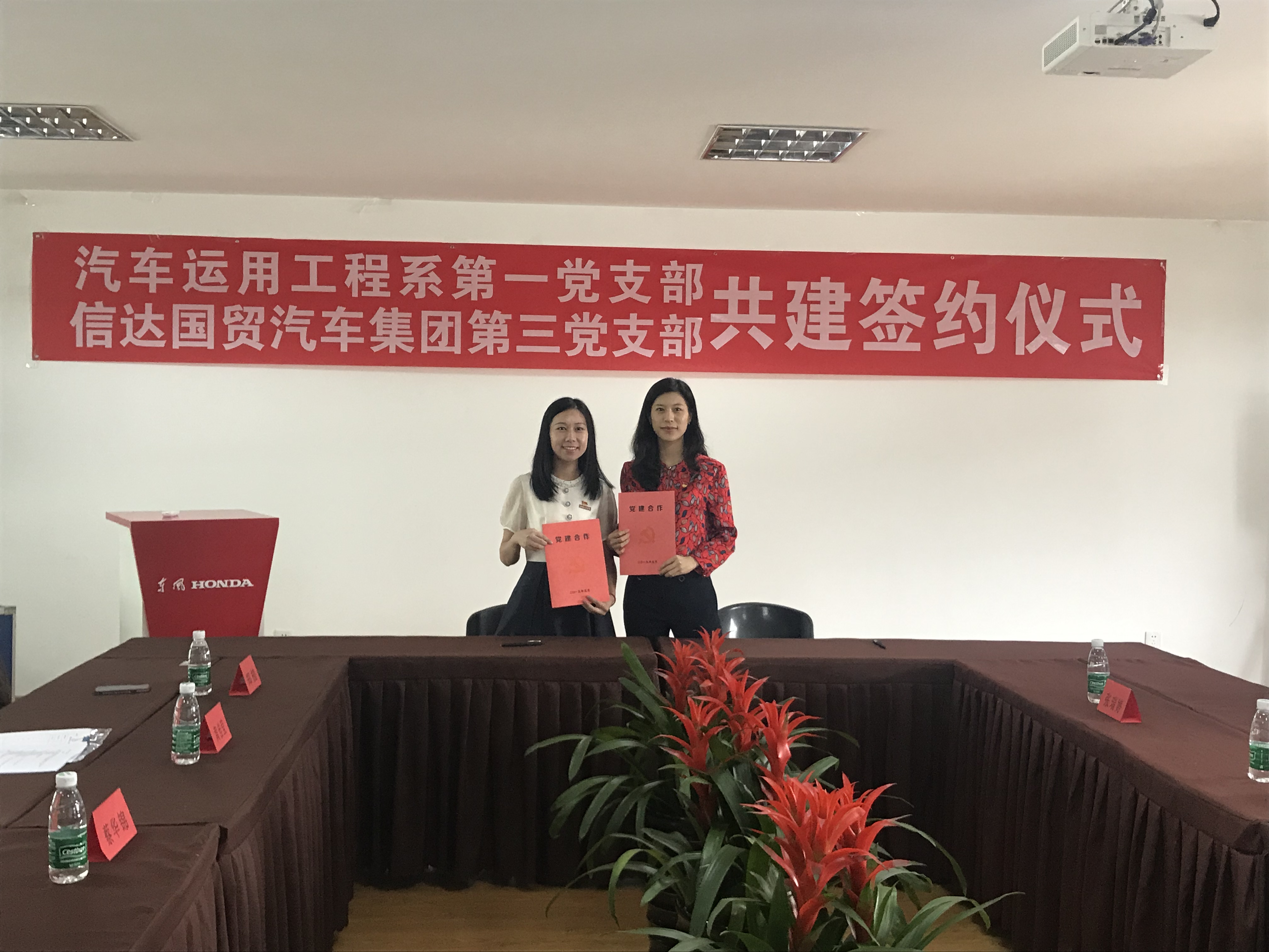 加強(qiáng)黨建工作,推動(dòng)校企基層黨組織交流、合作與共同發(fā)展,2019年5月13日下午,福建船政交通職業(yè)學(xué)院汽車運(yùn)用工程系第一黨支部和信達(dá)國貿(mào)汽車第三黨支部在福州華夏汽車城內(nèi)簽訂了黨支部合作共建協(xié)議。