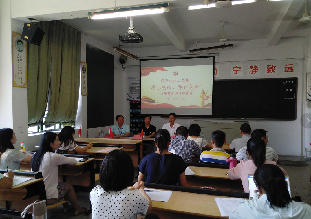 為深入貫徹落實(shí)習(xí)近平總書記關(guān)于“不忘初心、牢記使命”主題教育的重要講話和重要批示精神及學(xué)院黨委的部署要求,9月20日下午,汽車運(yùn)用工程系黨總支召開“不忘初心、牢記使命”主題教育動(dòng)員部署會(huì),汽車運(yùn)用工程系全體黨員參加了會(huì)議,學(xué)院巡回指導(dǎo)小組二組組長王心金及指導(dǎo)組成員到會(huì)指導(dǎo)。