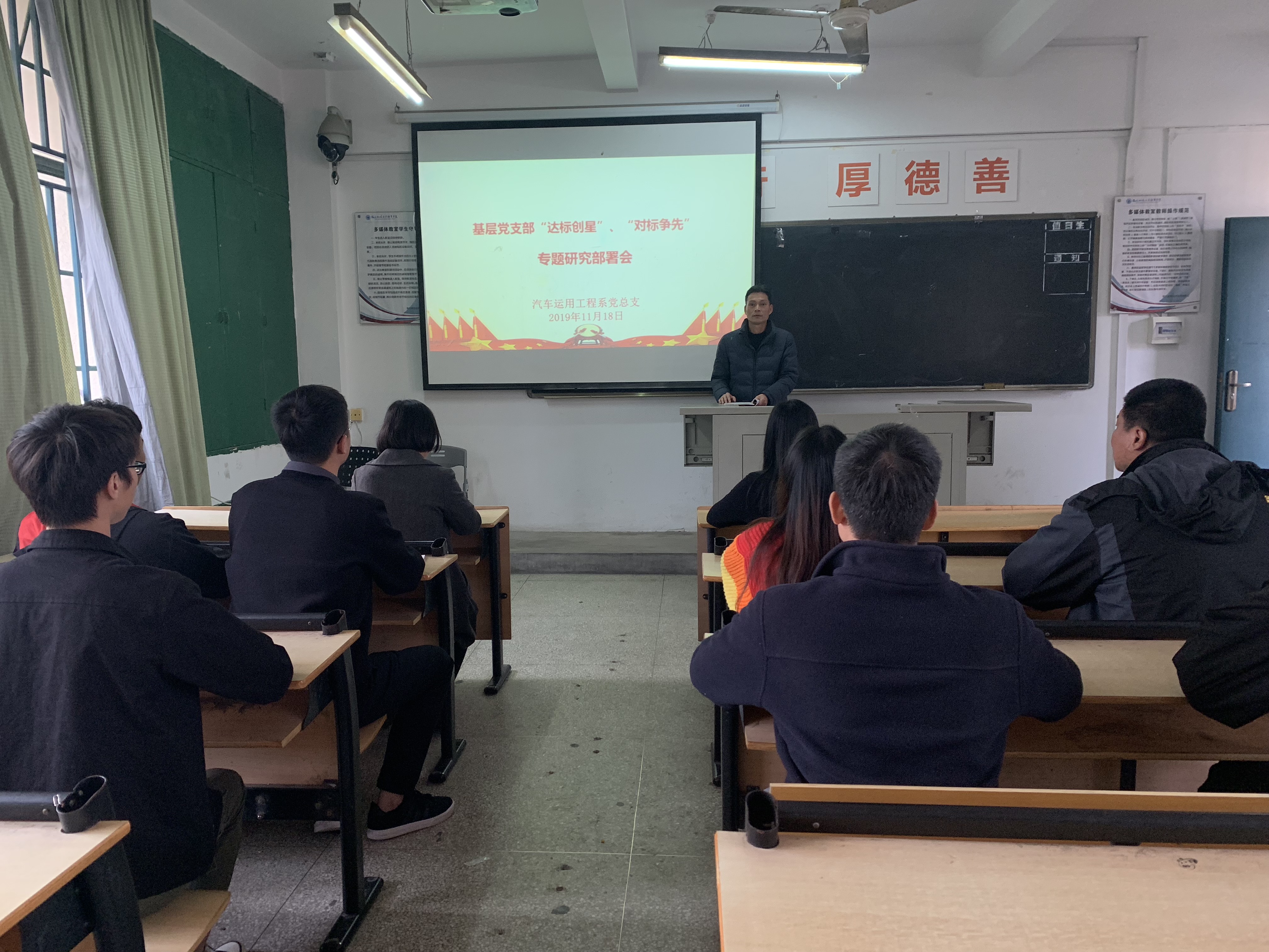 為深入學(xué)習(xí)黨的十九大精神,嚴(yán)格貫徹落實(shí)《中共教育部黨組關(guān)于高校黨組織“對(duì)標(biāo)爭(zhēng)先”建設(shè)計(jì)劃的實(shí)施意見(jiàn)》和省委組織部《關(guān)于開(kāi)展基層黨支部達(dá)標(biāo)創(chuàng)星活動(dòng)的實(shí)施方案》的文件精神,汽車(chē)系黨總支于2019年11月18日下午,在22號(hào)樓三樓會(huì)議室召開(kāi)總支擴(kuò)大會(huì),專(zhuān)題研究布置黨支部“對(duì)標(biāo)爭(zhēng)先” 和“達(dá)標(biāo)創(chuàng)星”工作。