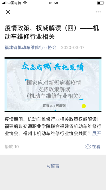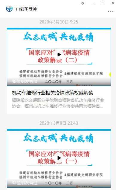 政策解讀相關(guān)視頻在福建省機(jī)動(dòng)車維修行業(yè)協(xié)會(huì)公眾號、百創(chuàng)車導(dǎo)師等公眾號推出