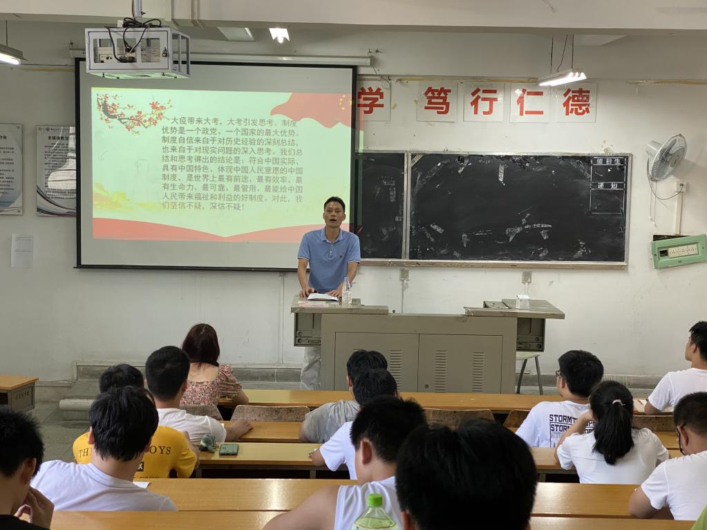 蔡華錦書(shū)記以“我國(guó)制度優(yōu)勢(shì)在抗擊疫情中的力量彰顯”為題,從領(lǐng)導(dǎo)力量的彰顯,思想力量的彰顯,國(guó)家力量的彰顯,人民力量的彰顯,道德力量的彰顯五個(gè)方面論述中國(guó)用一個(gè)多月的時(shí)間初步遏制了疫情蔓延勢(shì)頭,用三個(gè)月左右的時(shí)間取得了武漢保衛(wèi)戰(zhàn)、湖北保衛(wèi)戰(zhàn)的決定性成果,疫情防控阻擊戰(zhàn)取得重大戰(zhàn)略成果?;仡櫤涂偨Y(jié)抗擊疫情整個(gè)過(guò)程,對(duì)同學(xué)們進(jìn)一步深刻認(rèn)識(shí)我國(guó)制度的顯著優(yōu)勢(shì)具有重要意義。英勇抗擊新冠肺炎疫情是試金石,是教科書(shū),是教育廣大青年學(xué)生增強(qiáng)“四個(gè)意識(shí)”、堅(jiān)定“四個(gè)自信”、做到“兩個(gè)維護(hù)”,深入開(kāi)展理想信念教育、弘揚(yáng)社會(huì)主義核心價(jià)值觀提供了“生動(dòng)教材”。