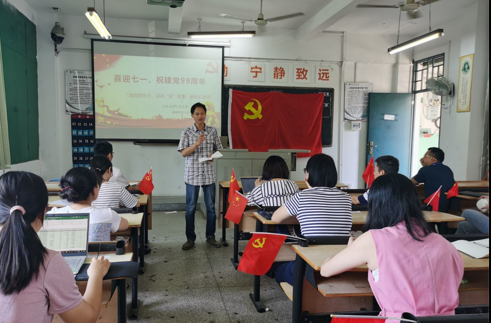 首先,支部書記蘇慶列老師發(fā)言,表達了他對中國共產(chǎn)黨的熱愛,以及建黨99周年的激動心情。