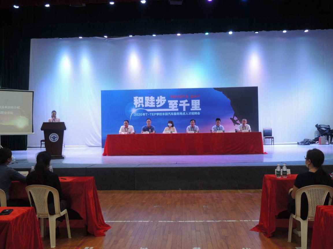 2020年9月23日,汽車學院在文體中心舉行“2020年T-TEP豐田汽車服務網點人才招聘會”。學生工作部(處)長王心金、汽車學院領導、豐田T-TEP事務局王斯伊老師、2020屆豐田班學員及其他畢業(yè)生參加了這場豐田專場招聘會。