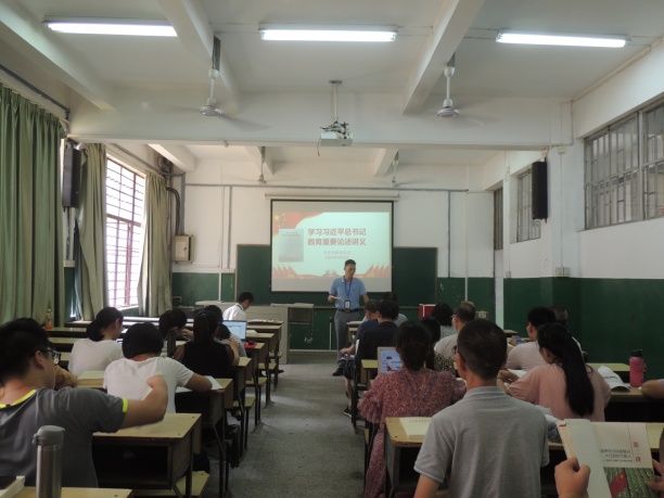 2020年9月2日下午汽車學(xué)院黨總支在10號樓104教室召開全體教職工大會,會上黨總支書記蔡華錦組織教職工學(xué)習(xí)《習(xí)近平總書記教育重要論述講義》,蔡華錦要求各黨支部要通過集中宣講、專題講座、集中研討等多種方式,組織師生認(rèn)真使用《講義》,交流學(xué)習(xí)心得、撰寫學(xué)習(xí)體會,全體師生深入學(xué)習(xí)貫徹習(xí)近平總書記關(guān)于教育的重要論述的科學(xué)內(nèi)涵、核心要義、精神實(shí)質(zhì)、實(shí)踐要求、重大意義,更好地用這一重要論述武裝頭腦、指導(dǎo)實(shí)踐、推動工作。