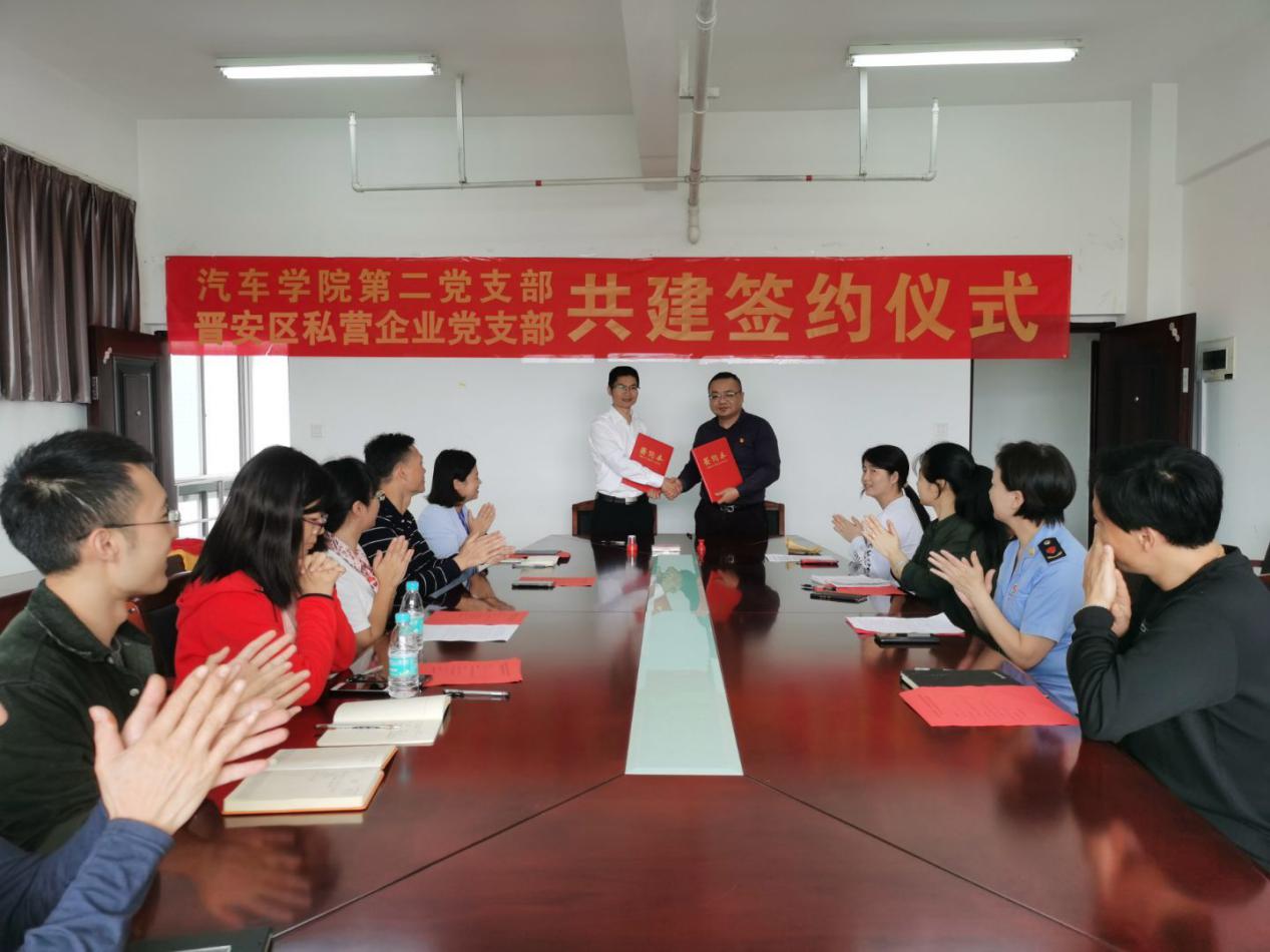 為貫徹落實(shí)黨中央關(guān)于加強(qiáng)城市非公黨建工作的部署要求,進(jìn)一步推動(dòng)學(xué)校黨組織融入城市非公黨建工作,推動(dòng)校企基層黨組織交流、合作與共同發(fā)展,2020年11月19日上午,福建船政交通職業(yè)學(xué)院汽車學(xué)院第二黨支部與福州市晉安區(qū)私營(yíng)企業(yè)黨支部簽訂黨支部合作共建協(xié)議。中共福州市市場(chǎng)監(jiān)督管理系統(tǒng)兩新組織委員會(huì)副書(shū)記黃紅霞、中共福州市私營(yíng)企業(yè)委員會(huì)組織委員劉春紅、中共福州市晉安區(qū)私營(yíng)企業(yè)支部委員會(huì)書(shū)記程元泉、中共福建船政交通職業(yè)學(xué)院汽車學(xué)院黨總支書(shū)記蔡華錦、汽車學(xué)院第二黨支部書(shū)記蘇慶列等出席了儀式。