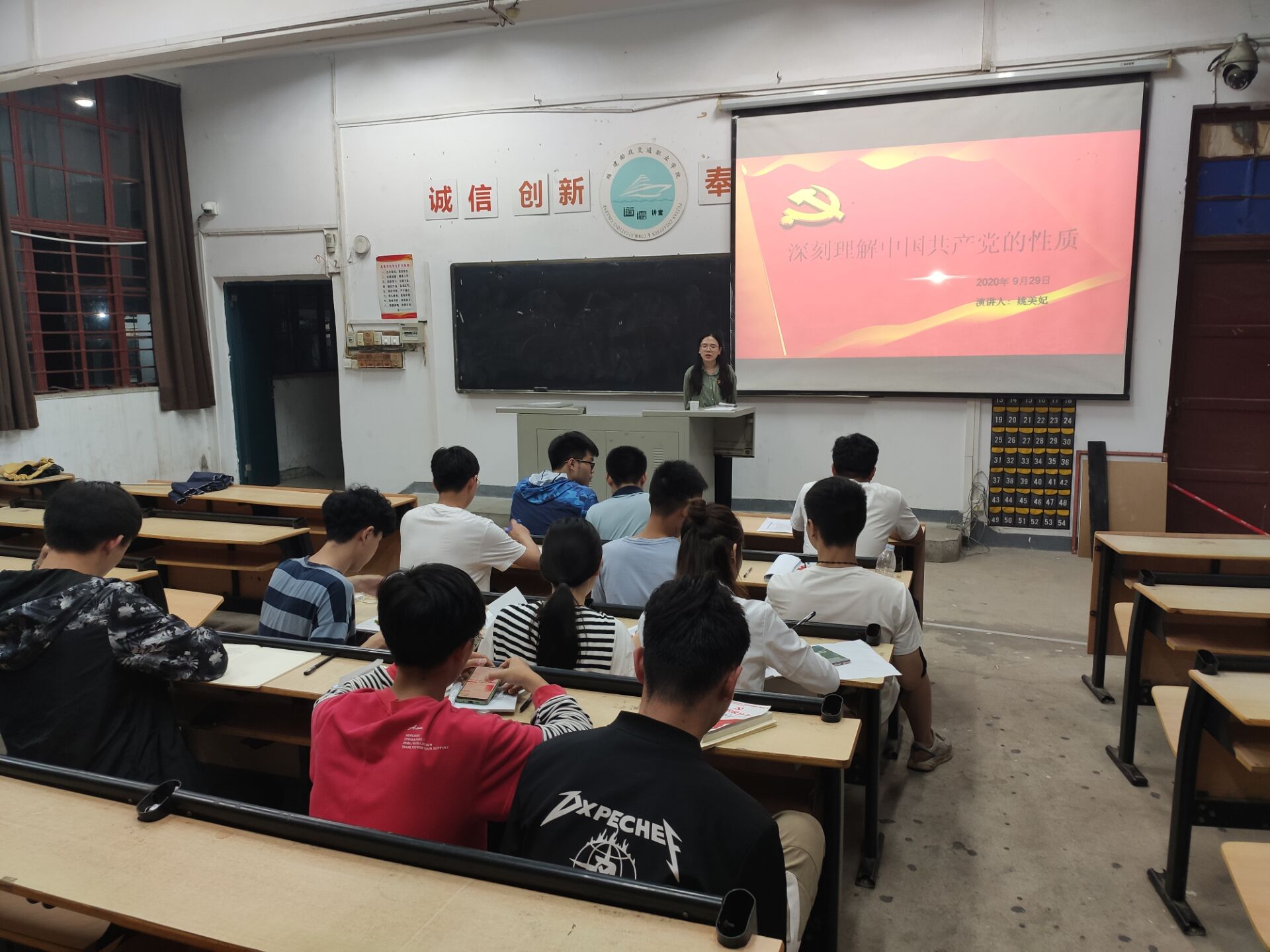 為落實(shí)“將骨干培養(yǎng)成黨員、將黨員培養(yǎng)成骨干”雙培養(yǎng)工作,提高黨員發(fā)展對(duì)象政治素質(zhì)和黨性修養(yǎng)。2020年10月16日,汽車學(xué)院第一黨支部書記姚美妃在北區(qū)8號(hào)樓217教室為發(fā)展對(duì)象上《準(zhǔn)確把握中國(guó)共產(chǎn)黨的綱領(lǐng)》、《深刻理解中國(guó)共產(chǎn)黨的性質(zhì)》的黨課。