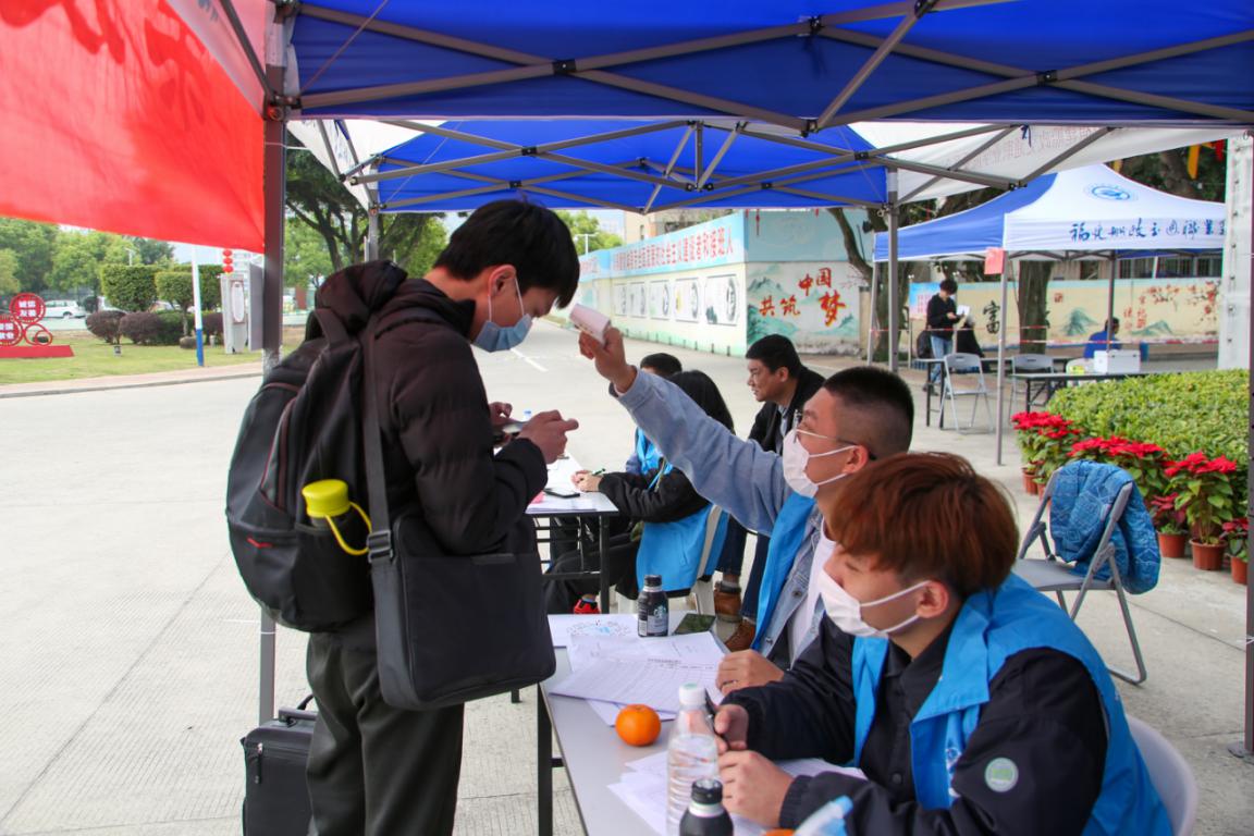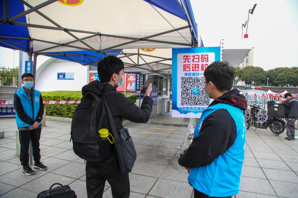 校門口志愿工作者們一絲不茍、細(xì)心留意各項(xiàng)工作細(xì)節(jié),引導(dǎo)返校的同學(xué)打開八閩健康碼掃描二維碼進(jìn)入校園,對行李進(jìn)行消殺、幫助同學(xué)們提行李、耐心引導(dǎo)學(xué)生入校,返?,F(xiàn)場秩序井然、有條不紊。