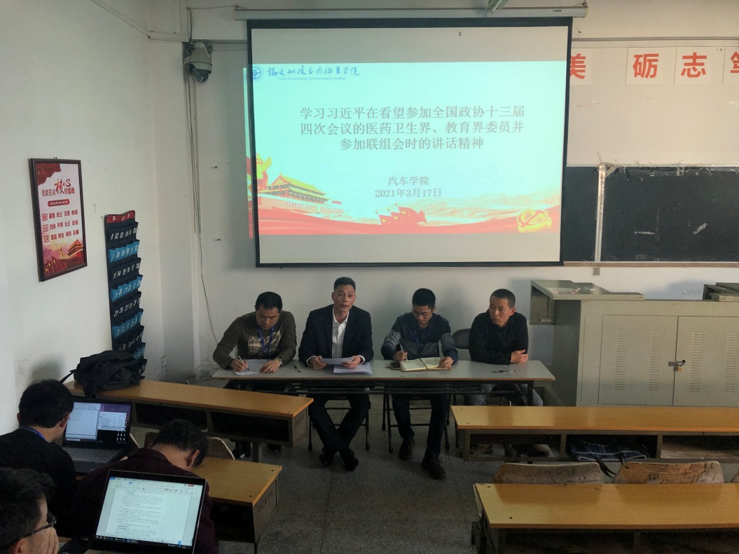 2021年3月17日,汽車學(xué)院組織全體教職工學(xué)習(xí)“習(xí)近平在看望參加全國政協(xié)十三屆四次會議的醫(yī)藥衛(wèi)生界、教育界委員并參加聯(lián)組會時(shí)的講話精神”。