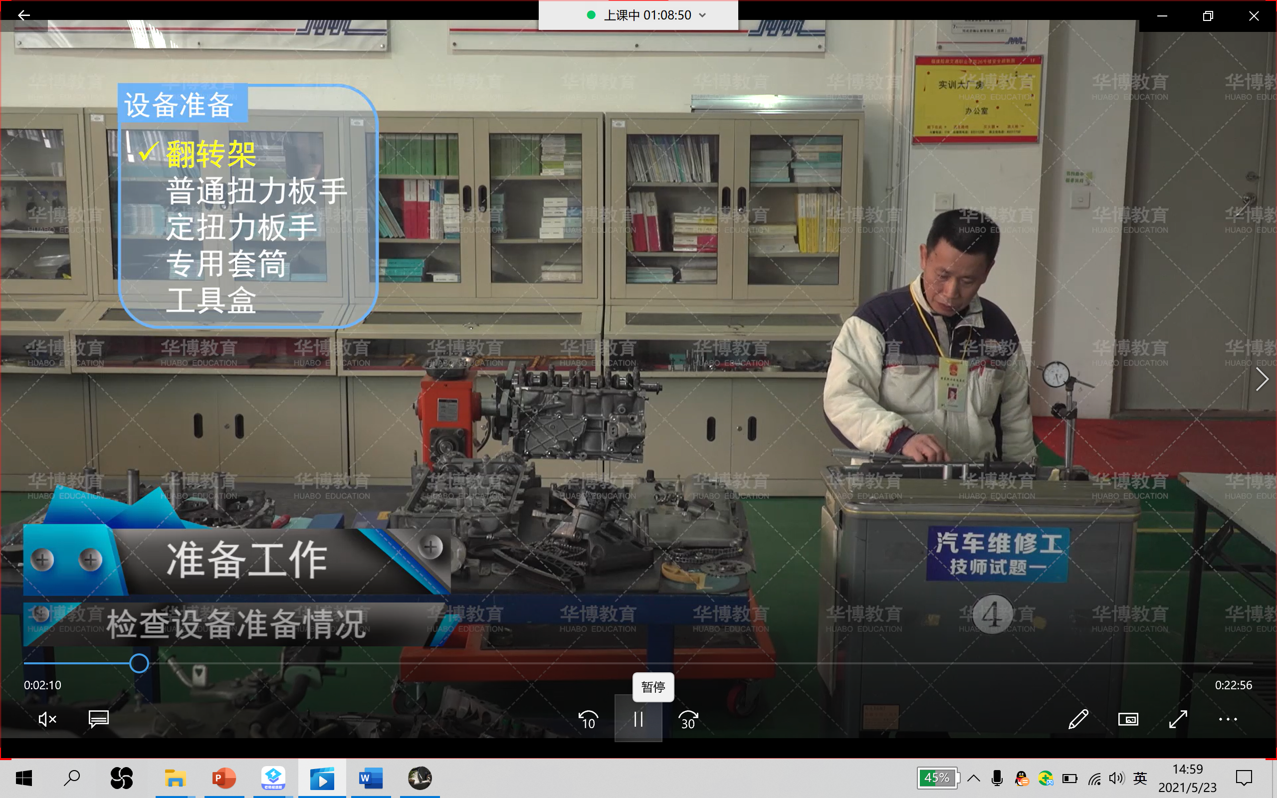 隨后,展示了兩段典型的汽車維修工高級的實操考核視頻,分別是汽車測量或檢驗類考題(曲軸拆裝及檢測)和故障診斷類考題(發(fā)動機怠速不穩(wěn)的故障診斷)。