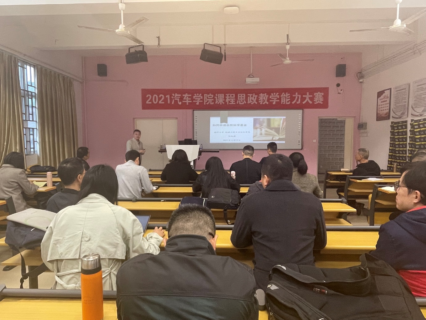 蘇慶列副院長在總結(jié)發(fā)言中代表汽車學(xué)院對何教授的慷慨分享表示感謝,他指出,講座中申報(bào)和審核自然科技基金項(xiàng)目的優(yōu)秀經(jīng)驗(yàn)為汽車學(xué)院今后工作提供了借鑒參考和突破方向,他要求全體教師要結(jié)合講座反思工作,及時(shí)學(xué)習(xí)吸收,積極付諸實(shí)踐。