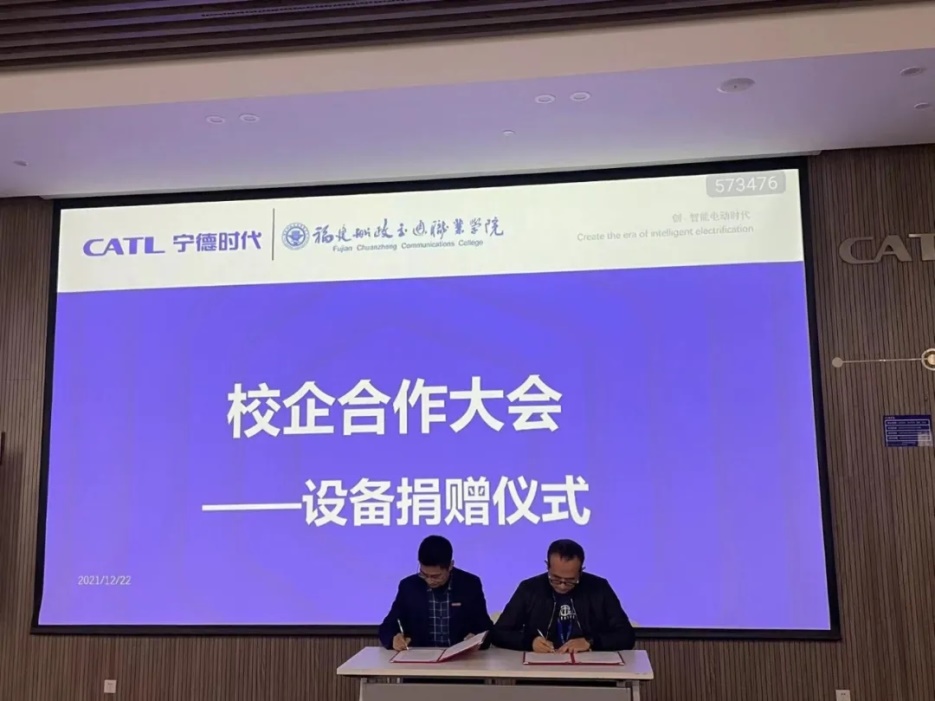 蘇慶列副院長代表我們學(xué)院與寧德時(shí)代代表曹彬經(jīng)理進(jìn)行了寧德時(shí)代捐贈設(shè)備的簽約儀式,寧德時(shí)代將會捐贈一臺價(jià)值100萬元的模切機(jī)給我們學(xué)院。該設(shè)備投入教學(xué)后,將會完善我們學(xué)院的實(shí)訓(xùn)室條件,使面向?qū)幍聲r(shí)代的訂單班學(xué)生可以提前學(xué)習(xí)并操作企業(yè)的生產(chǎn)設(shè)備,畢業(yè)后實(shí)現(xiàn)與企業(yè)無縫對接。
