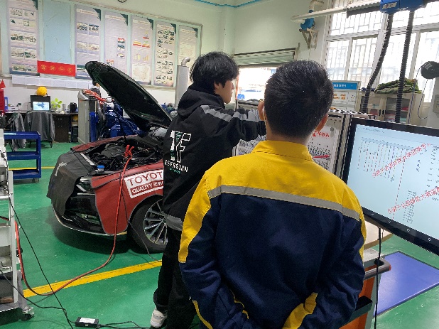 本次比賽,以發(fā)動機一類故障作為比賽內容,選手需要在實車上找出故障原因,并排除故障。比賽中,學生展示出了我院汽車專業(yè)學生極高的職業(yè)素養(yǎng),不僅具備極強的安全意識,并且操作規(guī)范認真,態(tài)度嚴謹,并完全參照企業(yè)5S工作流程進行作業(yè),將平時授課所學專業(yè)知識充分的展示在眾人面前,也展示出了汽車學院學生作為新一代汽車人的職業(yè)風采。