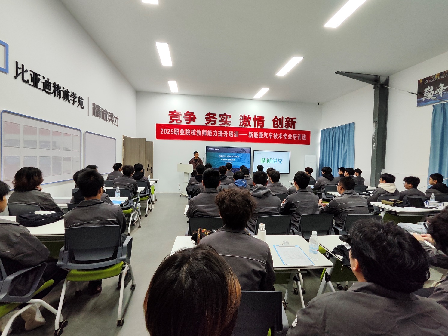 2025年3月26日下午14:00,比亞迪精誠學(xué)苑"企業(yè)工匠進(jìn)校園"系列講座在中區(qū)比亞迪汽車實(shí)訓(xùn)基地教室舉行。本次以"動力電池結(jié)構(gòu)原理及檢測"為主題的講座,不僅是一次專業(yè)知識的傳授,更是一場工匠精神的傳承盛會,23級新能源汽車技術(shù)2班(比亞迪精誠英才班)全體學(xué)生參加了此次活動。主講人賴昌斌工程師作為比亞迪技術(shù)巡檢專家,15年來始終堅守在汽車行業(yè)一線,以其精益求精的工匠態(tài)度,成為福建省比亞迪全品牌技術(shù)支持的骨干力量。講座中,他以"工匠育人"為理念,通過生動詳實(shí)的案例,深入剖析了動力電池的核心技術(shù),特別強(qiáng)調(diào)了在檢測環(huán)節(jié)中"毫厘不差"的專業(yè)標(biāo)準(zhǔn)。