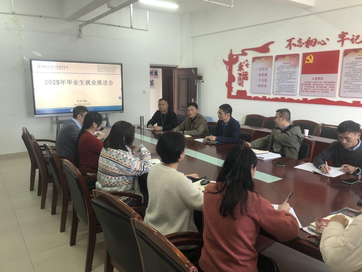 為扎實推進畢業(yè)生就業(yè)工作,助力畢業(yè)生高質量就業(yè),汽車學院于3月11日召開2025屆畢業(yè)生就業(yè)推進會。會議由汽車學院黨總支書記蔡華錦主持,學院領導班子、各教研室主任、畢業(yè)班輔導員參加會議。