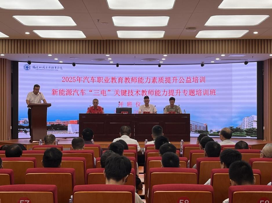 為落實《教育強(qiáng)國建設(shè)規(guī)劃綱要(2024—2035年)》文件精神,提升“雙師型”教師隊伍建設(shè)水平,進(jìn)一步推動汽車職業(yè)教育高質(zhì)量均衡發(fā)展。由福建船政交通職業(yè)學(xué)院主辦的2025年汽車職業(yè)教育教師能力素質(zhì)提升公益培訓(xùn)班暨2025年福建省專業(yè)技術(shù)人才知識更新工程高級研修班于8月20日正式開幕,本次培訓(xùn)旨在順應(yīng)汽車產(chǎn)業(yè)變革趨勢,推動新能源汽車技術(shù)普及與人才隊伍建設(shè),吸引了來自全國中、高職院校汽車專業(yè)的專業(yè)帶頭人和骨干教師、全省行業(yè)技術(shù)骨干及省內(nèi)各地市機(jī)動車維修行業(yè)協(xié)會會長等75人參加培訓(xùn)。