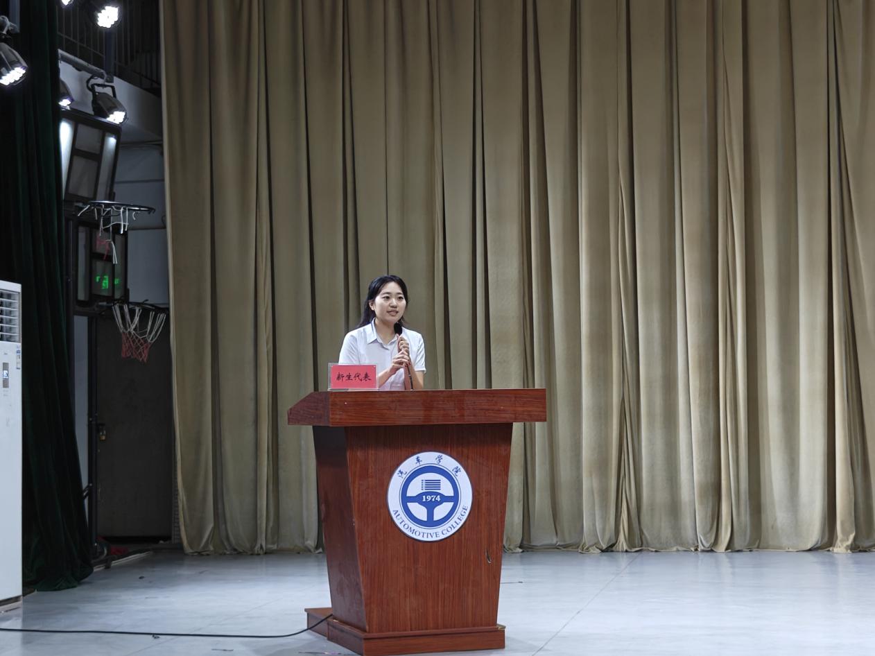 隨后,新生代表孫靜文發(fā)言。她滿懷激動(dòng)與憧憬,分享了自己對大學(xué)生活的期待,表達(dá)了與同學(xué)們共同努力、在汽車學(xué)院追逐夢想的決心,展現(xiàn)出新生們蓬勃的朝氣與積極向上的精神風(fēng)貌。