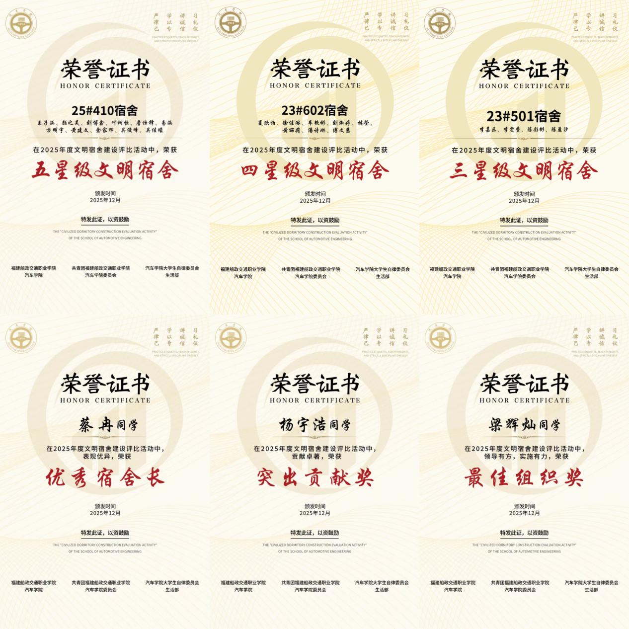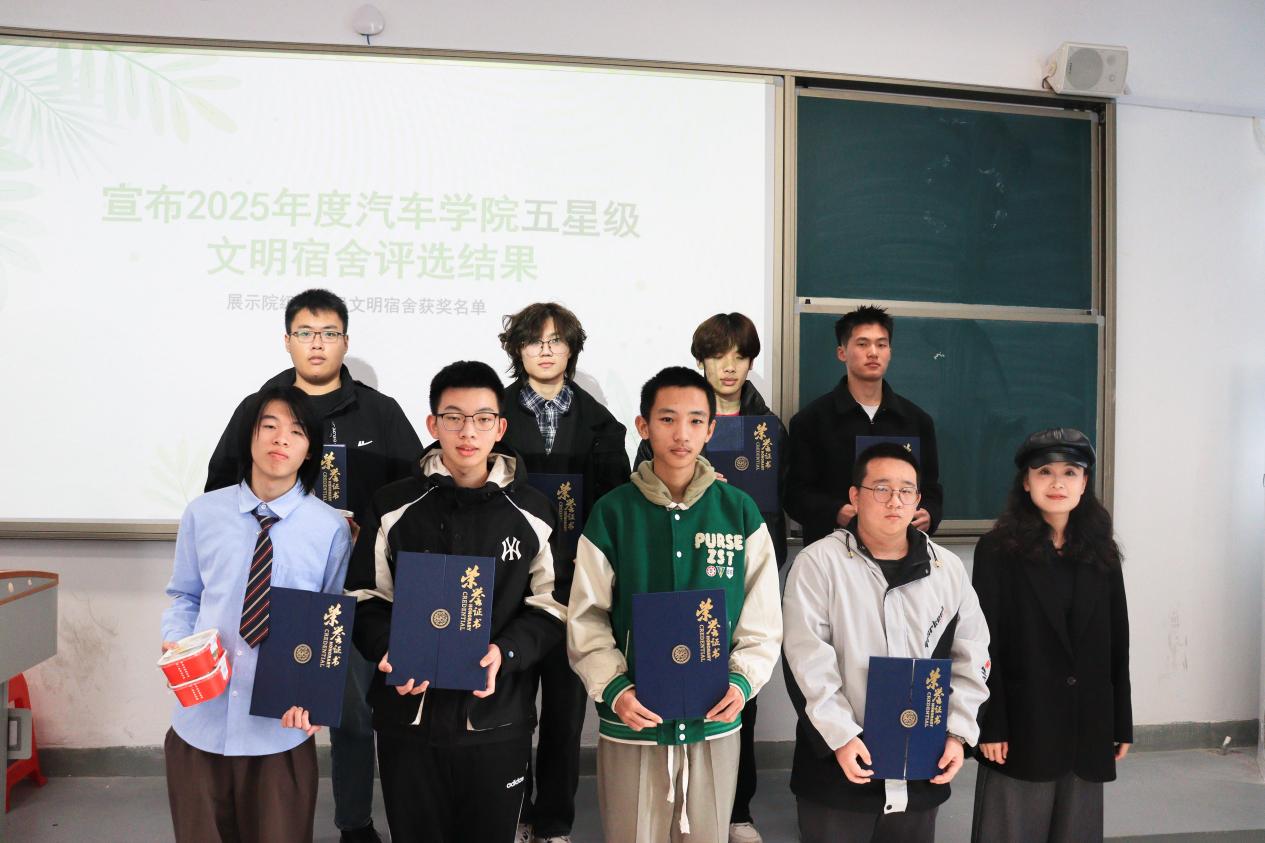 此次表彰大會(huì)不僅樹(shù)立了文明標(biāo)桿,更凝聚了建設(shè)和諧校園的共識(shí)。汽車(chē)學(xué)院將以此次大會(huì)為契機(jī),讓榜樣力量輻射全院,推動(dòng)更多宿舍成為文明養(yǎng)成的窗口、學(xué)業(yè)進(jìn)步的平臺(tái)、情誼凝聚的家園。未來(lái)進(jìn)一步深化“五育融合”理念,完善宿舍建設(shè)長(zhǎng)效機(jī)制,持續(xù)開(kāi)展多樣化的特色活動(dòng),推動(dòng)思政教育下沉一線(xiàn),讓宿舍成為全員參與、全員育人的鮮活課堂,助力汽車(chē)學(xué)子們?cè)趦?yōu)良環(huán)境中全面發(fā)展。