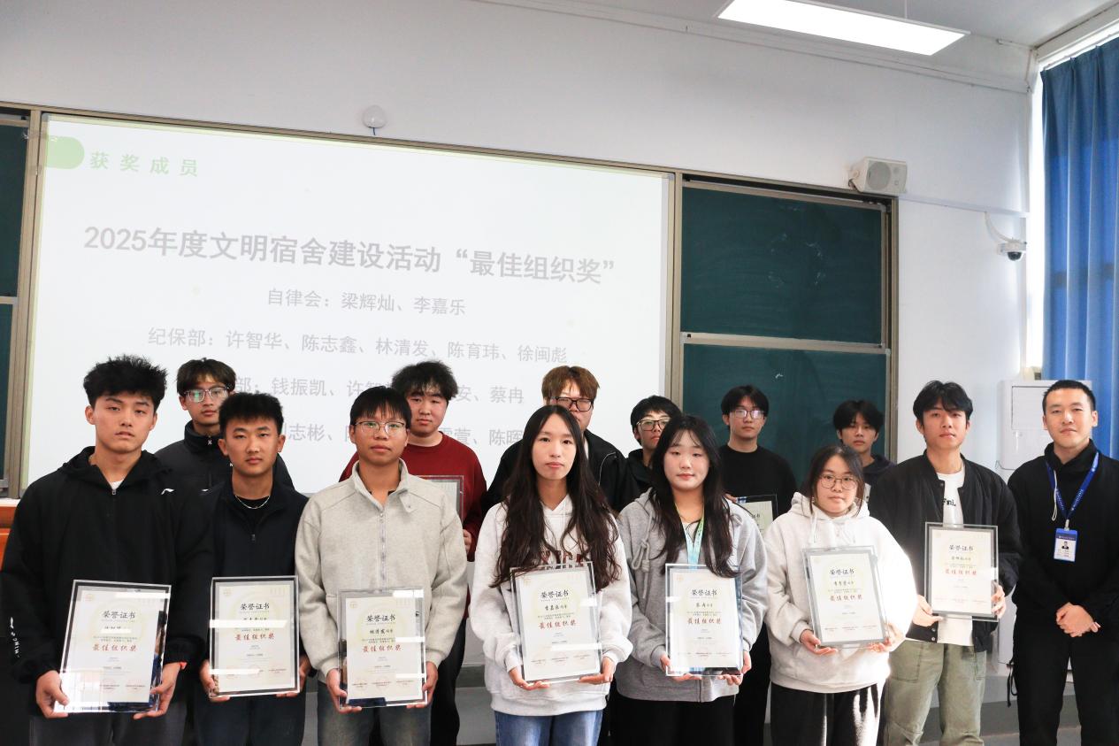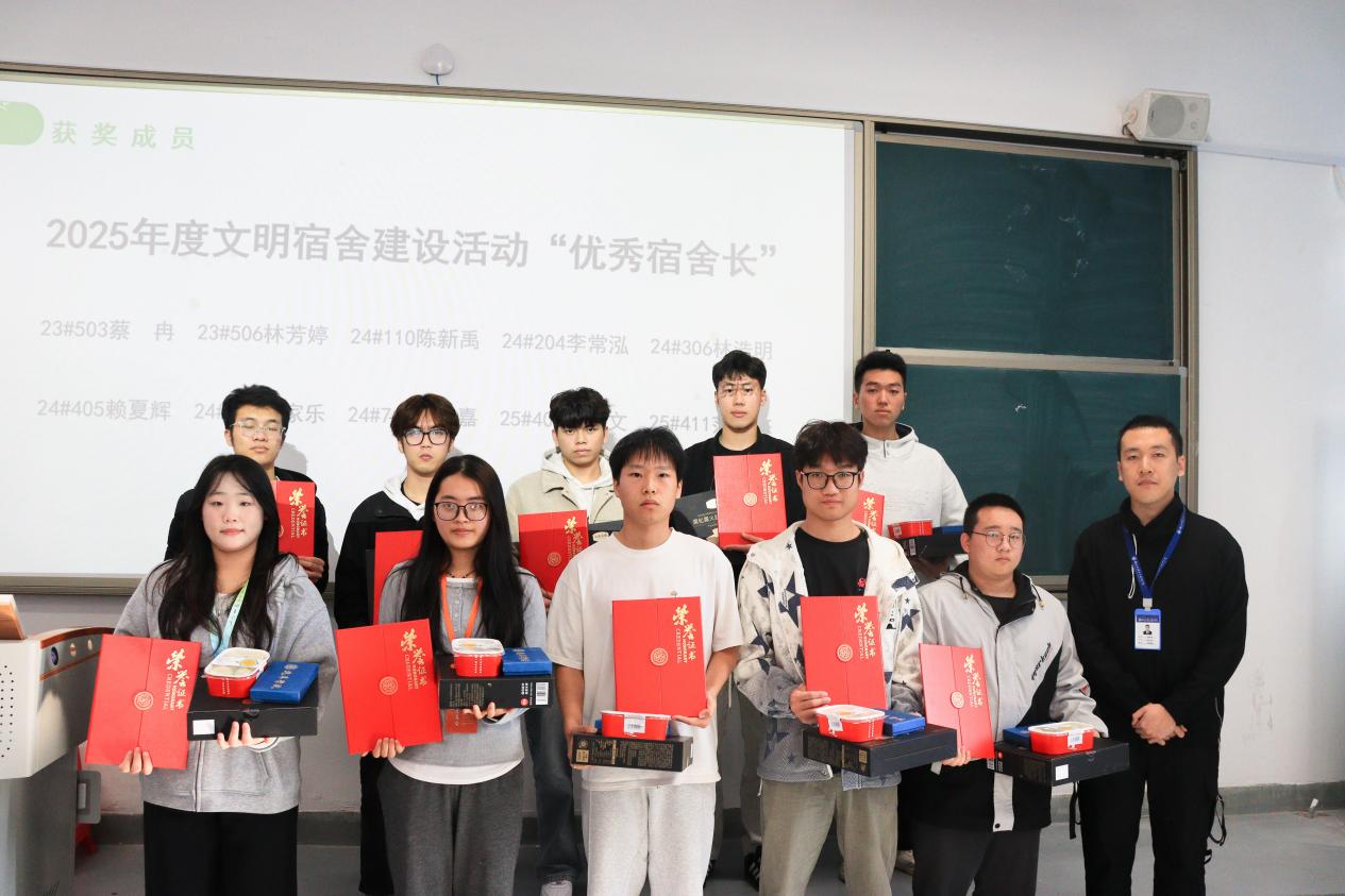 頒獎(jiǎng)環(huán)節(jié)中,輔導(dǎo)員們陸續(xù)上臺(tái)為2025年度文明宿舍建設(shè)先進(jìn)集體與先進(jìn)個(gè)人逐一頒發(fā)榮譽(yù)證書(shū)與實(shí)用獎(jiǎng)品,這既是對(duì)過(guò)往努力的肯定,更承載著對(duì)學(xué)子們營(yíng)造優(yōu)質(zhì)宿舍生活的期許。值得一提的是,除表彰先進(jìn)集體外,今年活動(dòng)中首次加入了先進(jìn)個(gè)人的表彰環(huán)節(jié),并細(xì)化為“優(yōu)秀宿舍長(zhǎng)”“突出貢獻(xiàn)獎(jiǎng)”“最佳組織獎(jiǎng)”等多個(gè)層級(jí),其中“優(yōu)秀宿舍長(zhǎng)”用于表彰在本年度安全衛(wèi)生檢查中表現(xiàn)優(yōu)異的同學(xué);“突出貢獻(xiàn)獎(jiǎng)”用于表彰在宿舍文化活動(dòng)和維護(hù)宿舍公共區(qū)域環(huán)境中貢獻(xiàn)突出的同學(xué);“最佳組織獎(jiǎng)”用于表彰在文明宿舍建設(shè)評(píng)比活動(dòng)中領(lǐng)導(dǎo)有方、實(shí)施有力的學(xué)生干部,形成梯度獎(jiǎng)勵(lì)機(jī)制,實(shí)現(xiàn)了文明宿舍建設(shè)全過(guò)程的有效閉環(huán)。