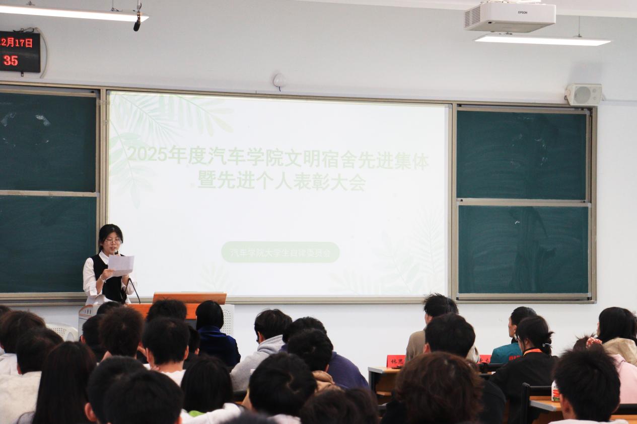 近日,汽車(chē)學(xué)院2025年度文明宿舍建設(shè)先進(jìn)集體及先進(jìn)個(gè)人表彰大會(huì)在學(xué)院第四階梯教室圓滿(mǎn)舉行。學(xué)生宿舍管理工作負(fù)責(zé)人、輔導(dǎo)員、兩委學(xué)生干部及獲獎(jiǎng)集體與個(gè)人代表共計(jì)224人齊聚現(xiàn)場(chǎng),以榜樣為鑒,共話(huà)文明宿舍建設(shè)新路徑,讓青春正能量在宿舍這片育人陣地中持續(xù)傳遞。