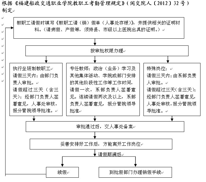 福建船政交通職業(yè)學院學院教職工請假流程圖