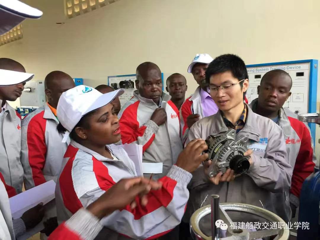為幫助肯尼亞政府對(duì)本國(guó)大專院校的汽車維修專業(yè)進(jìn)行升級(jí)建設(shè),福建船政交通職業(yè)學(xué)院從2018年開(kāi)始為肯尼亞教育部制定汽修專業(yè)師資培訓(xùn)方案,開(kāi)發(fā)《汽車使用與維護(hù)》《汽車發(fā)動(dòng)機(jī)構(gòu)造與維修》《汽車電氣系統(tǒng)檢修》等8門(mén)汽修專業(yè)核心課程英文版教材及其課程資源,并于2018年6月至12月先后派出5名優(yōu)秀教師赴肯尼亞,為肯尼亞教育部從全國(guó)13所院校選拔的20名教師開(kāi)展專業(yè)培訓(xùn)和教學(xué)指導(dǎo)。根據(jù)肯尼亞教育部大中專升級(jí)改造項(xiàng)目要求,汽車運(yùn)用工程系老師運(yùn)用自身豐富的教學(xué)經(jīng)驗(yàn)和嫻熟的實(shí)踐技能,為肯尼亞教師量身定制培訓(xùn)方案,培訓(xùn)效果獲得肯尼亞參訓(xùn)教師和教育部的一致好評(píng)!