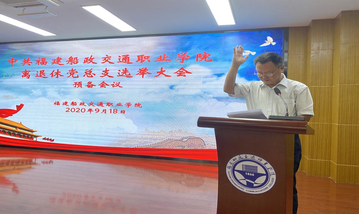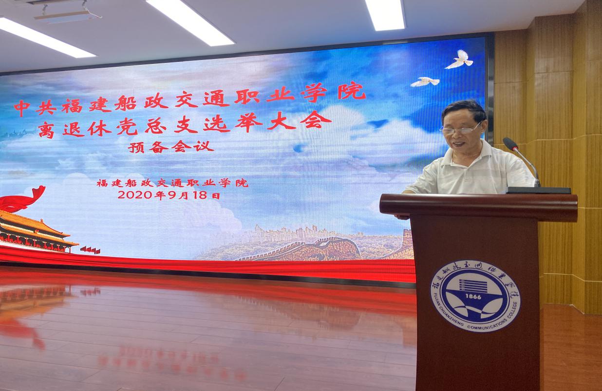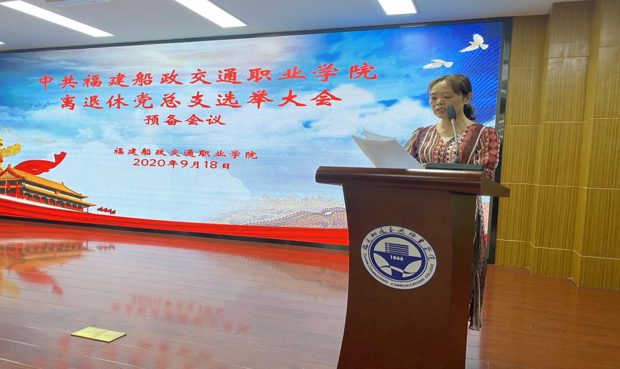 2020年9月18日上午,福建船政交通職業(yè)學(xué)院離退休黨總支成立大會(huì)在一號(hào)樓六樓學(xué)術(shù)報(bào)告廳舉行。大會(huì)由退休黨員王向民同志主持,50余名離退休黨員參加成立大會(huì)。