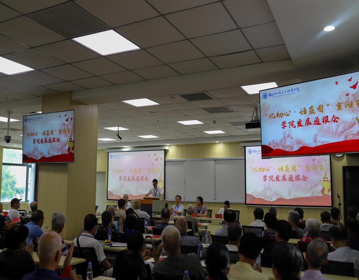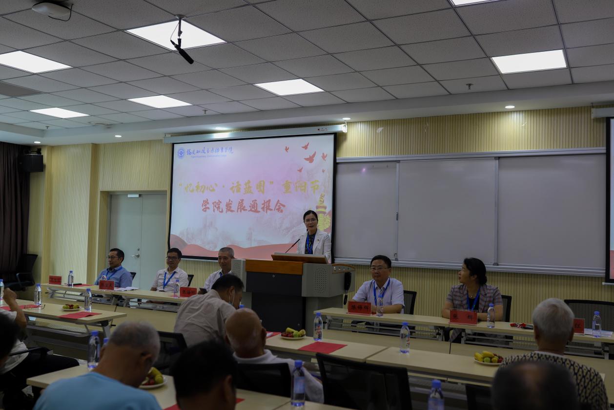 隨后,“憶初心、話藍(lán)圖”重陽節(jié)學(xué)院發(fā)展通報(bào)會(huì)在培訓(xùn)學(xué)院會(huì)議室隆重召開,學(xué)院領(lǐng)導(dǎo)班子成員、職能部門負(fù)責(zé)人、離退休教師參加了大會(huì)。會(huì)議由學(xué)院黨委副書記陳宜大主持。