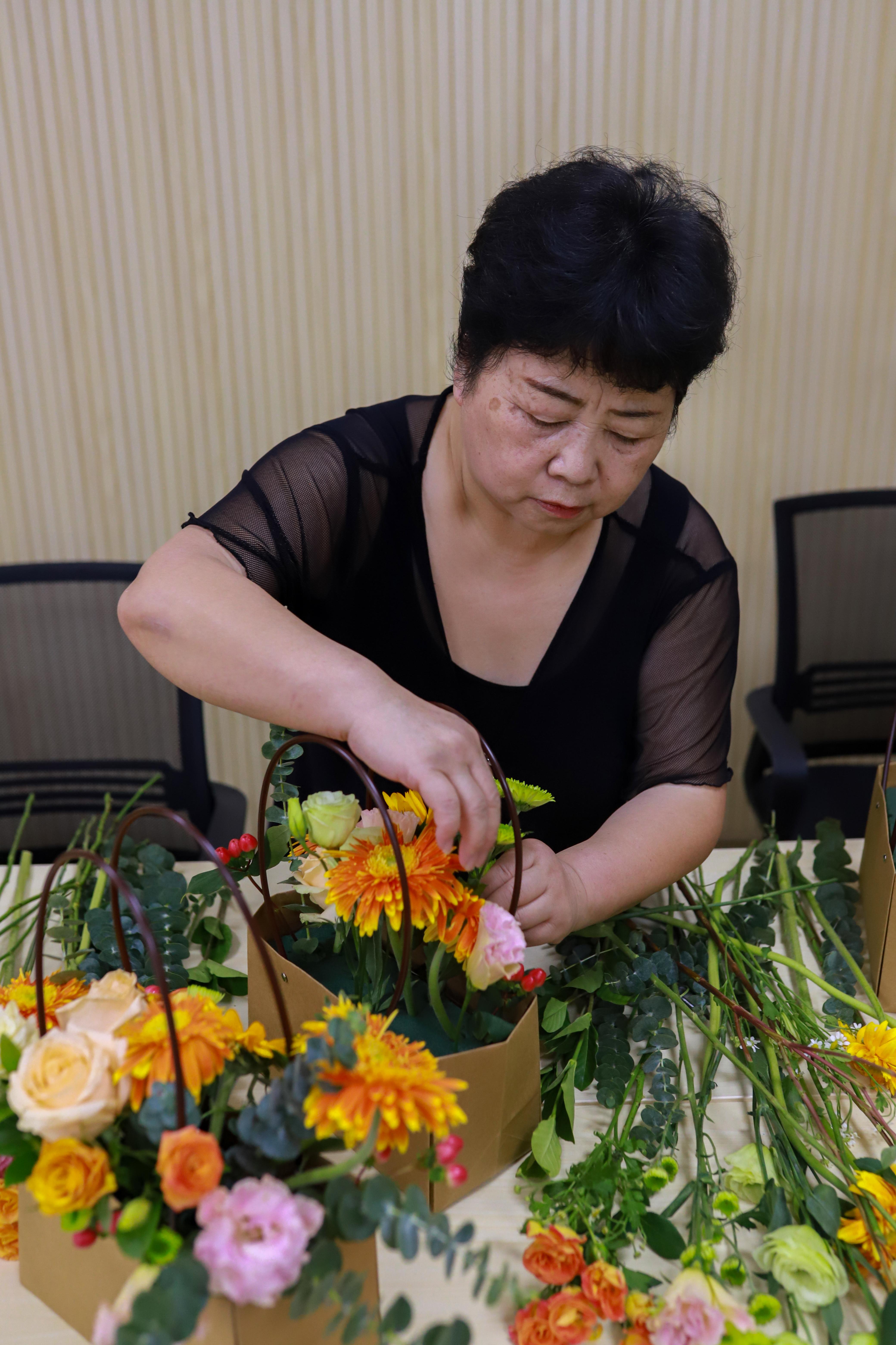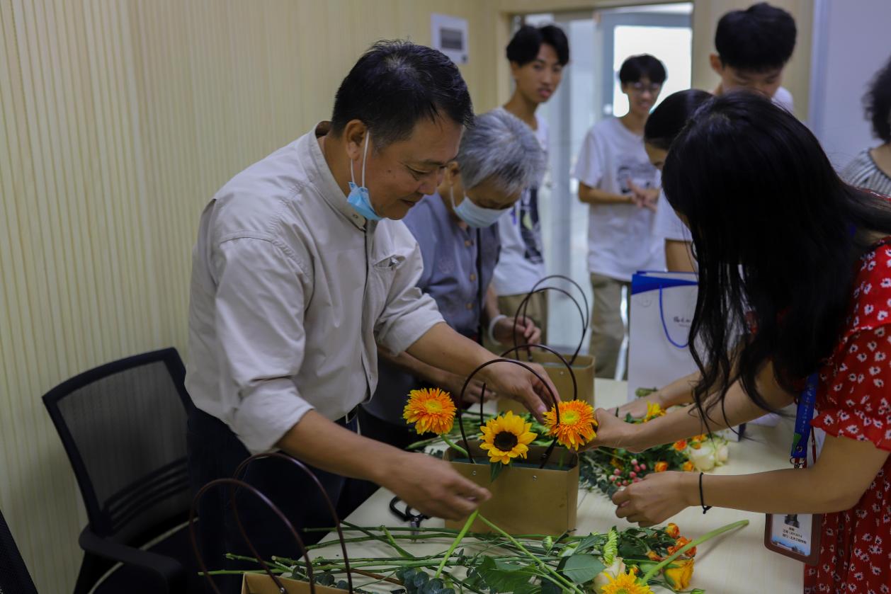 同時(shí),“花開重陽”花藝課堂在淡淡幽幽的花香和老同志們的熱情期待中開課,在花藝?yán)蠋熤v解花藝知識(shí)后,老同志們認(rèn)真開始插花,相互之間還不忘交流意見,陸續(xù)創(chuàng)作出各種形態(tài),各有千秋的插花作品。悠悠花香,情誼綿長,老同志們對(duì)自己的作品愛不釋手,連連感謝這次活動(dòng)帶來的美好體驗(yàn),體驗(yàn)了插花的樂趣,陶冶了情操。