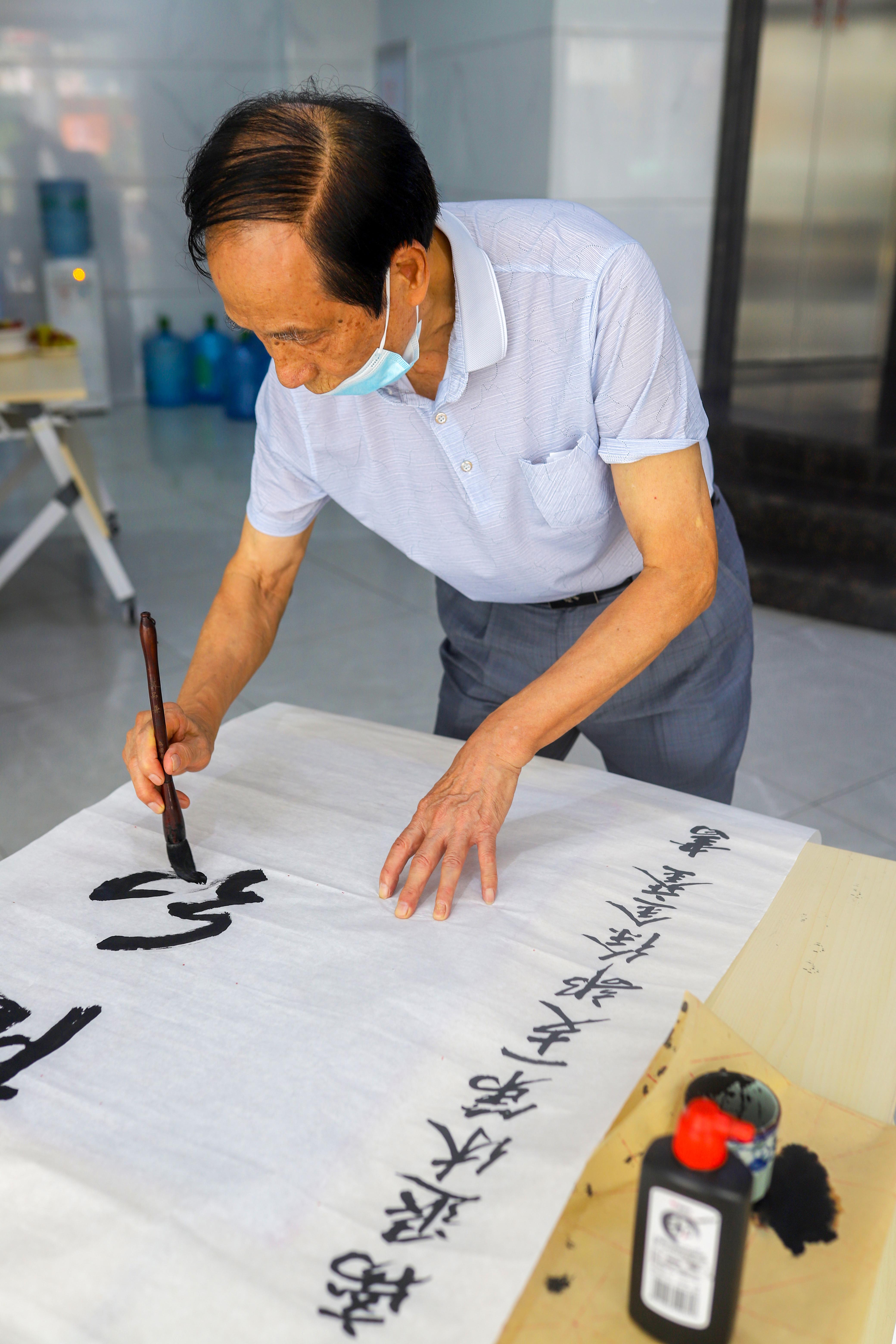 書畫攝影作品展中,一件件老同志精心創(chuàng)作的書畫和攝影作品,從不同角度、不同側(cè)面表達(dá)了民族精神,傳播了正能量。徐金鑾老師還現(xiàn)場揮毫潑墨,完成了一幅書法佳作,充分展現(xiàn)了老同志們老有所樂、老有所學(xué)、老有所為的良好精神風(fēng)貌。