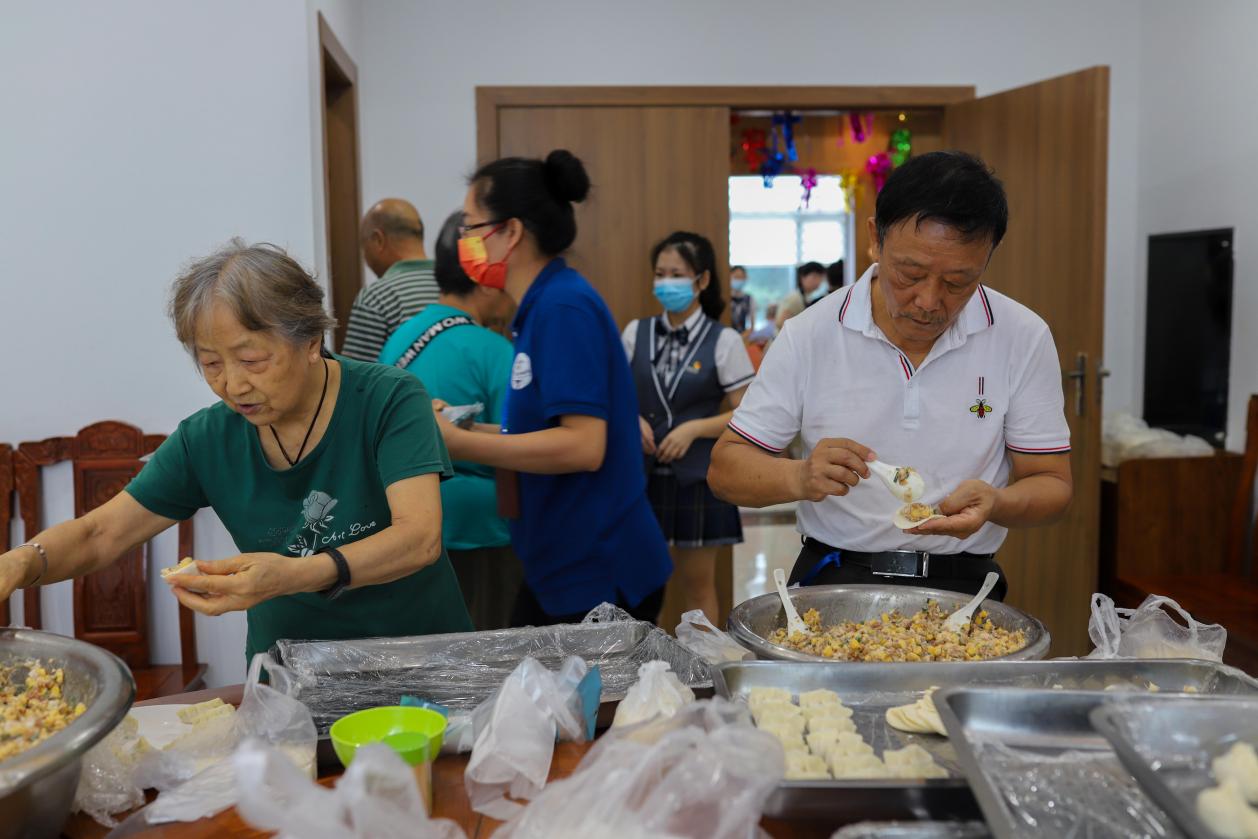 在最后的“重陽節(jié)節(jié)糕”活動(dòng)中,老同志們一起制作重陽糕,包餃子,老同志們面帶笑容,邊捏餃子邊拉家常,歡聲笑語,一片其樂融融的節(jié)日氣氛。