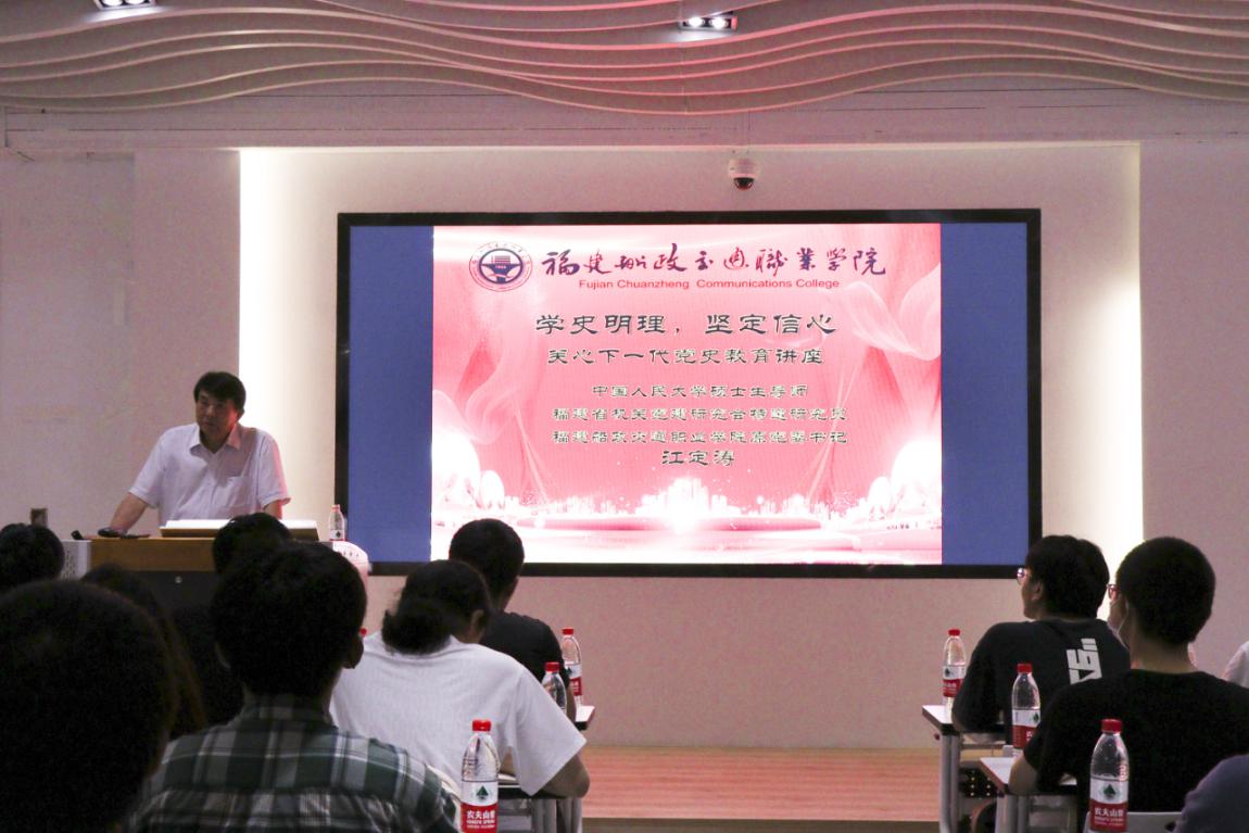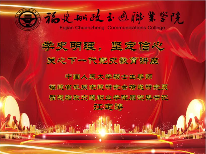 以史為鑒,開創(chuàng)未來。為推動(dòng)黨史學(xué)習(xí)教育常態(tài)化長(zhǎng)效化開展,以實(shí)際行動(dòng)迎接黨的二十大勝利召開,2022年5月31日下午,學(xué)院關(guān)工委邀請(qǐng)“五老”代表、中國人民大學(xué)碩士生導(dǎo)師、福建省機(jī)關(guān)黨建研究會(huì)特邀研究員、福建船政交通職業(yè)學(xué)院原黨委書記江定濤做《學(xué)史明理 堅(jiān)定信心》黨史學(xué)習(xí)教育專題講座。馬克思主義學(xué)院教師代表、習(xí)近平新時(shí)代中國特色社會(huì)主義思想讀書社、船政青年求是社、辯論協(xié)會(huì)、法學(xué)社等師生百余人參加講座。