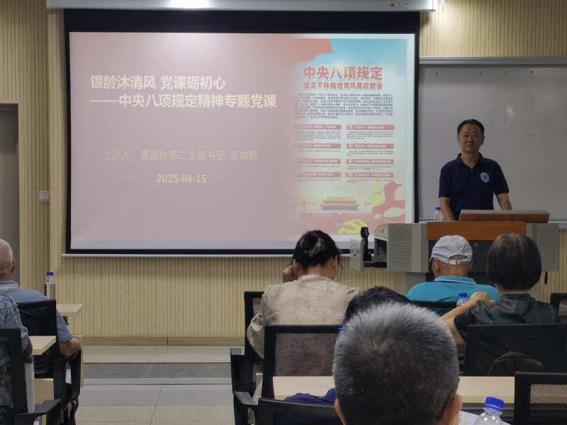 清風滿徑潤桑榆,理論宣講入人心。4月15日,中共福建船政交通職業(yè)學院離退休第二黨支部專題黨課如約而至,黨支部書記王向民以“深學細悟中央八項規(guī)定精神,銀齡堅守紀律初心”為主題,用生動案例、鮮活語言,為支部老黨員帶來一場兼具思想深度與情感溫度的黨課,讓中央八項規(guī)定精神在春風化雨中浸潤人心。
