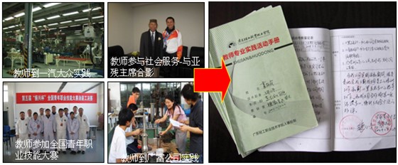 推行“教師專業(yè)實(shí)踐活動(dòng)手冊(cè)”管理。運(yùn)用“互聯(lián)網(wǎng)+手冊(cè)”,完善專任教師企業(yè)實(shí)踐的信息化管理。實(shí)施教師專業(yè)實(shí)踐目標(biāo)管理、過程控制、校企雙向考核,保障教師“領(lǐng)著任務(wù)去,帶著成果回”,真正走到企業(yè)生產(chǎn)服務(wù)一線頂崗工作,駐企業(yè)從事產(chǎn)品研發(fā)和技術(shù)改造,在為企業(yè)創(chuàng)造價(jià)值中升級(jí)專業(yè)能力。